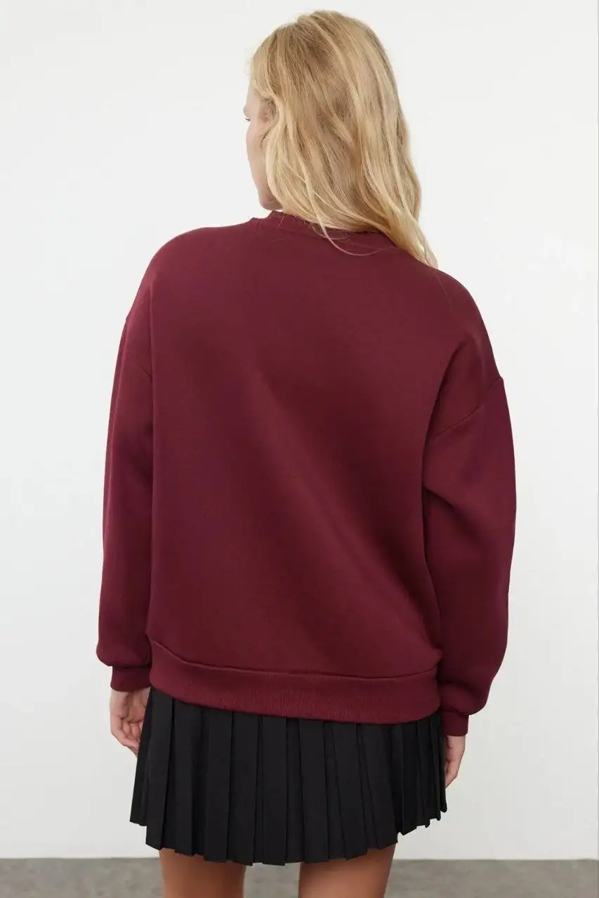 3 İplik şardonlu Bisiklet Yaka Sweatshirt Bordo, günlük stilinizde şıklığı ve konforu bir arada arayan kadınlar için ideal bir seçim olacak.