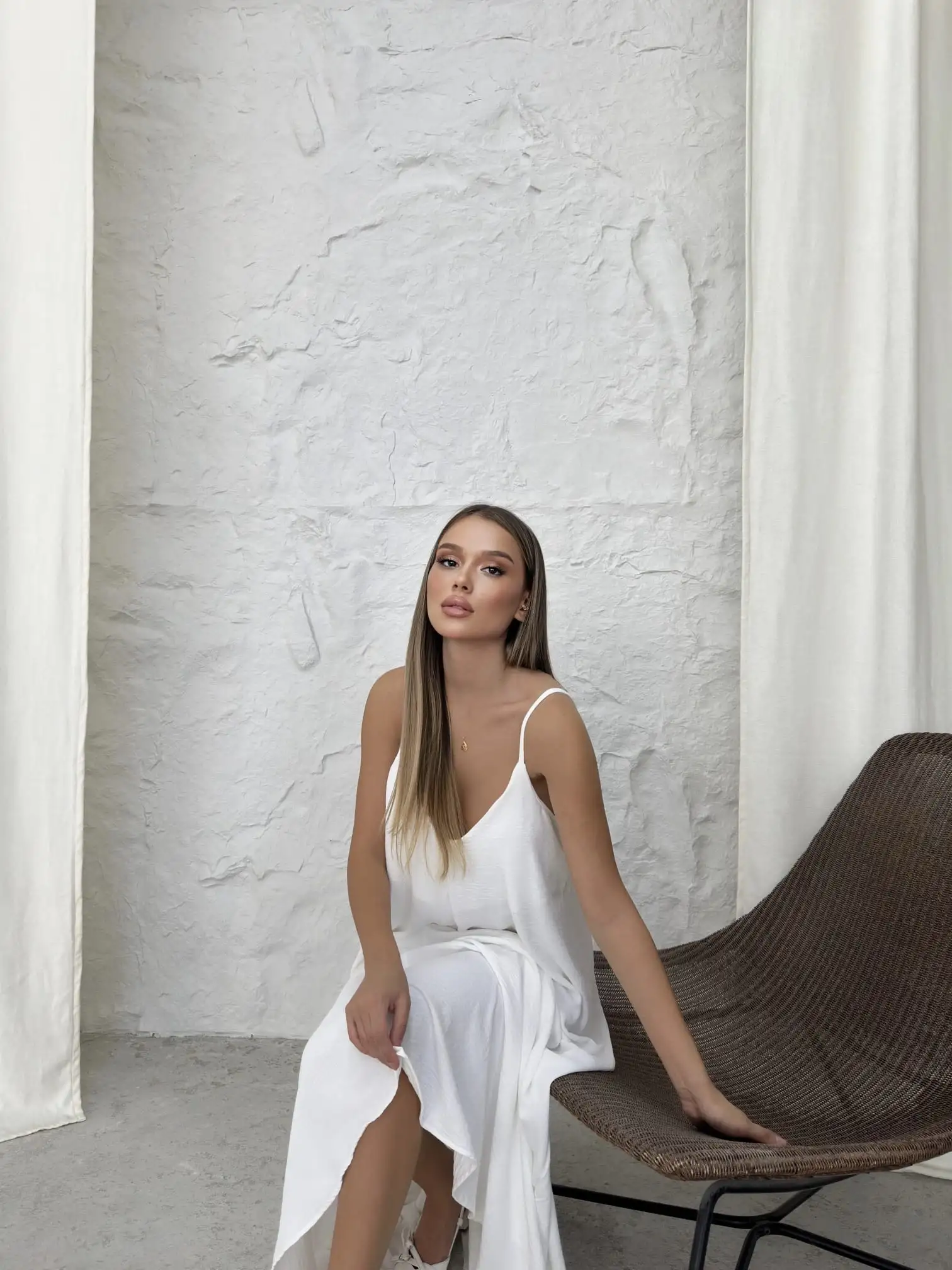 Aerobin markasının şık tasarımıyla öne çıkan uzun elbise saks beyaz rengiyle göz kamaştırıyor. Hem zarif hem de rahat kesimiyle günün her saati şıklık ve konfor sunuyor.