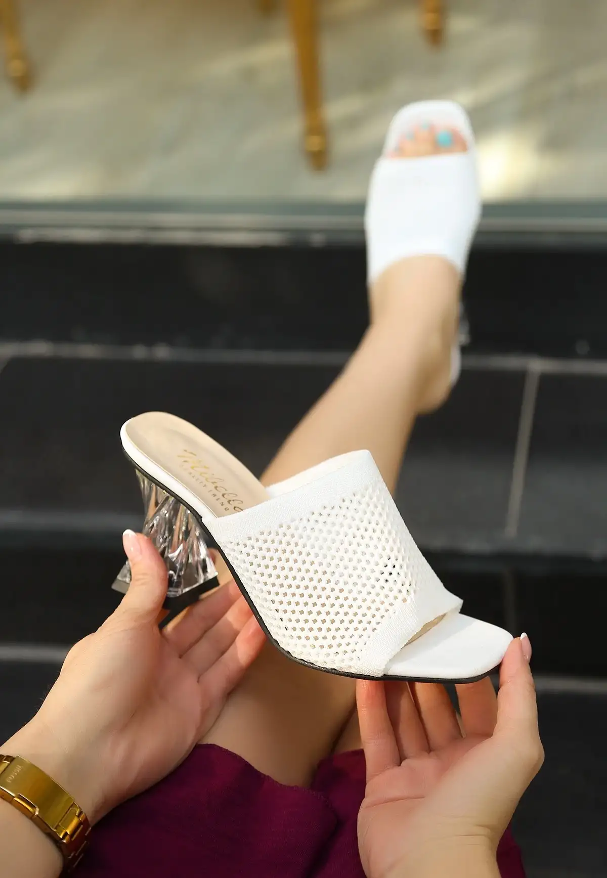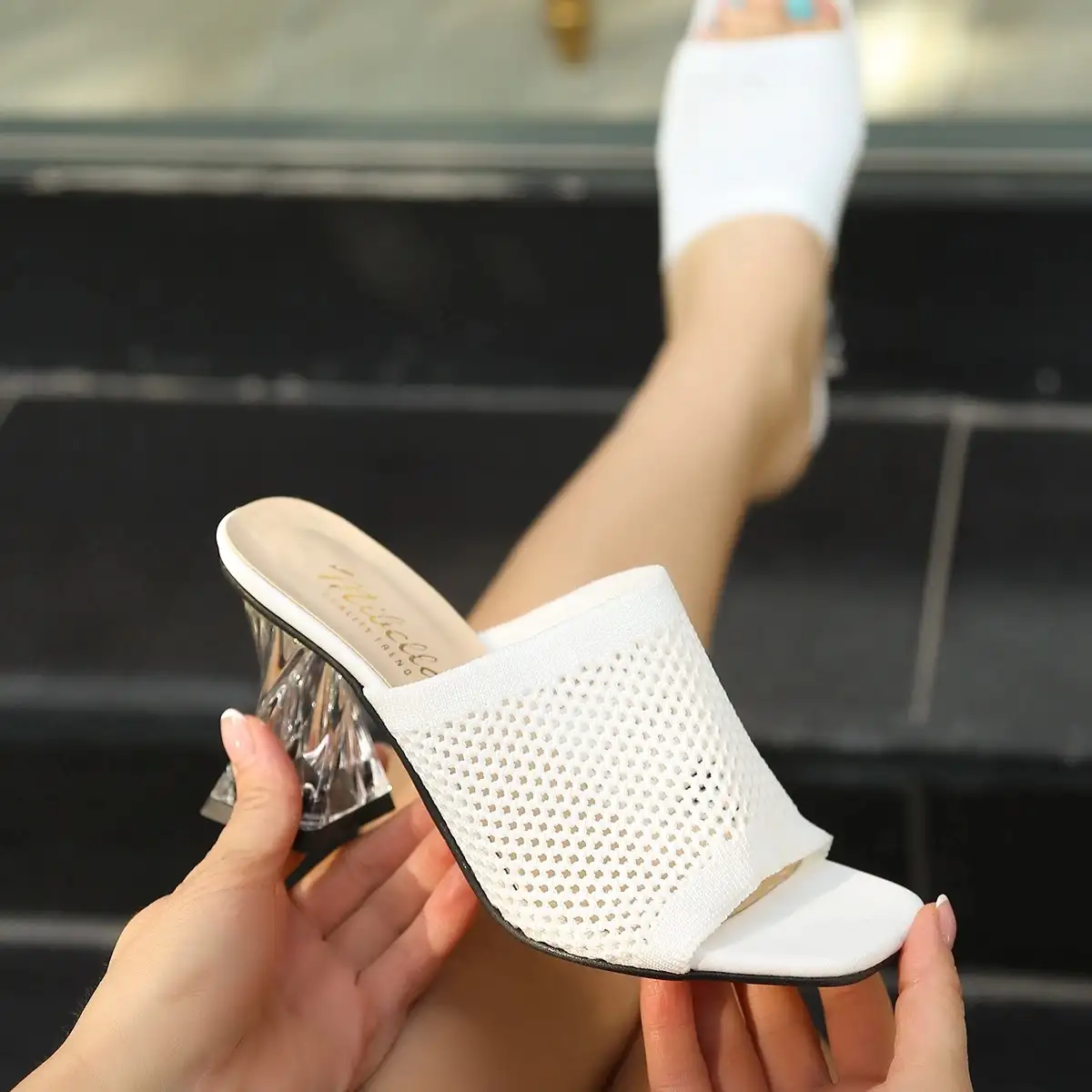 Detay: Şeffaf Topuklu Terlik