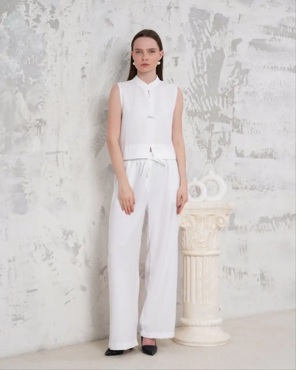 • Yelek ve pantolonun uyumlu kombinasyonu
