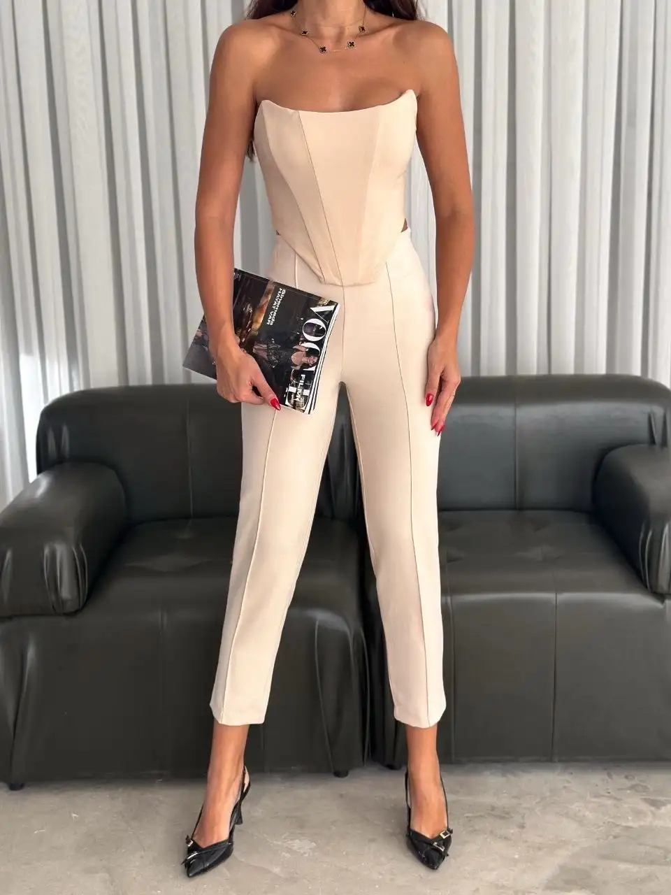 Büshiyer s1011 Pantolon Takımı, şıklığı ve rahatlığı bir arada sunan bir seçenektir. İş hayatında veya özel davetlerde şık bir görünüm elde etmek isteyen kadınların tercih edebileceği bir tasarıma sahiptir.