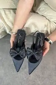 Cenya Siyah Saten Babet Ayakkabı