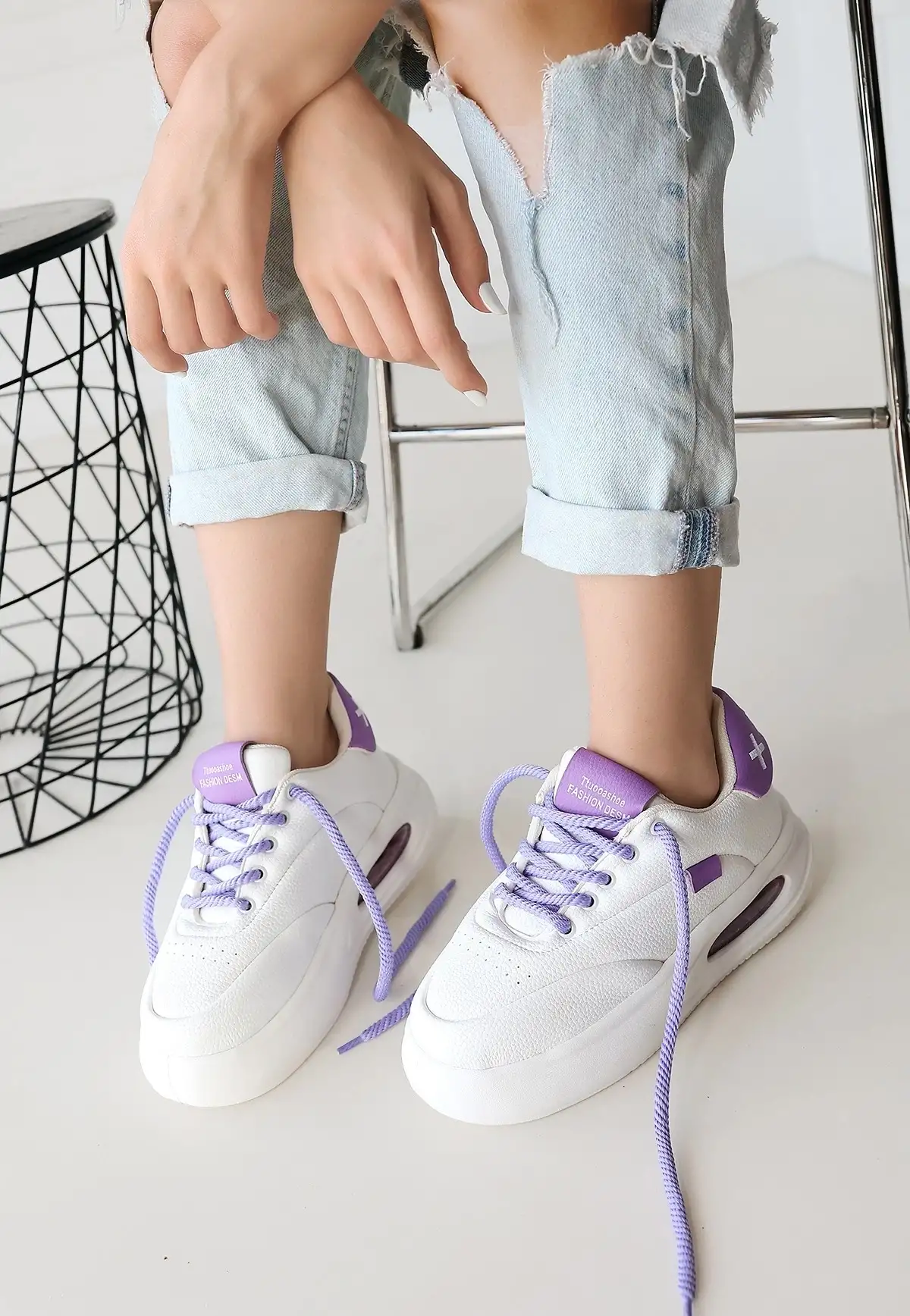 Chris Beyaz Cilt Lila Detaylı Bağcıklı Spor Ayakkabı