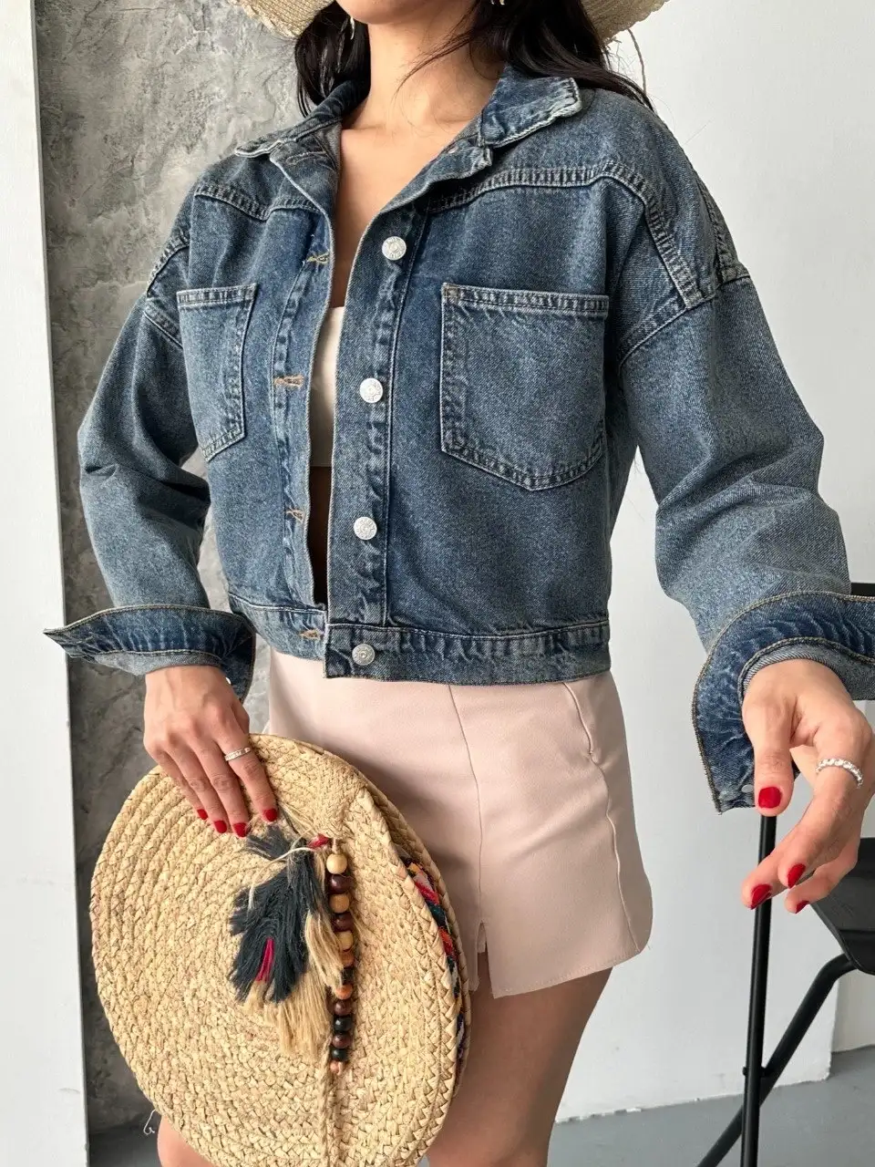 Yüksek kaliteli denim kumaştan üretilmiş olan D2000 Crop Kot Ceket, konforu ve şıklığı bir arada sunar.