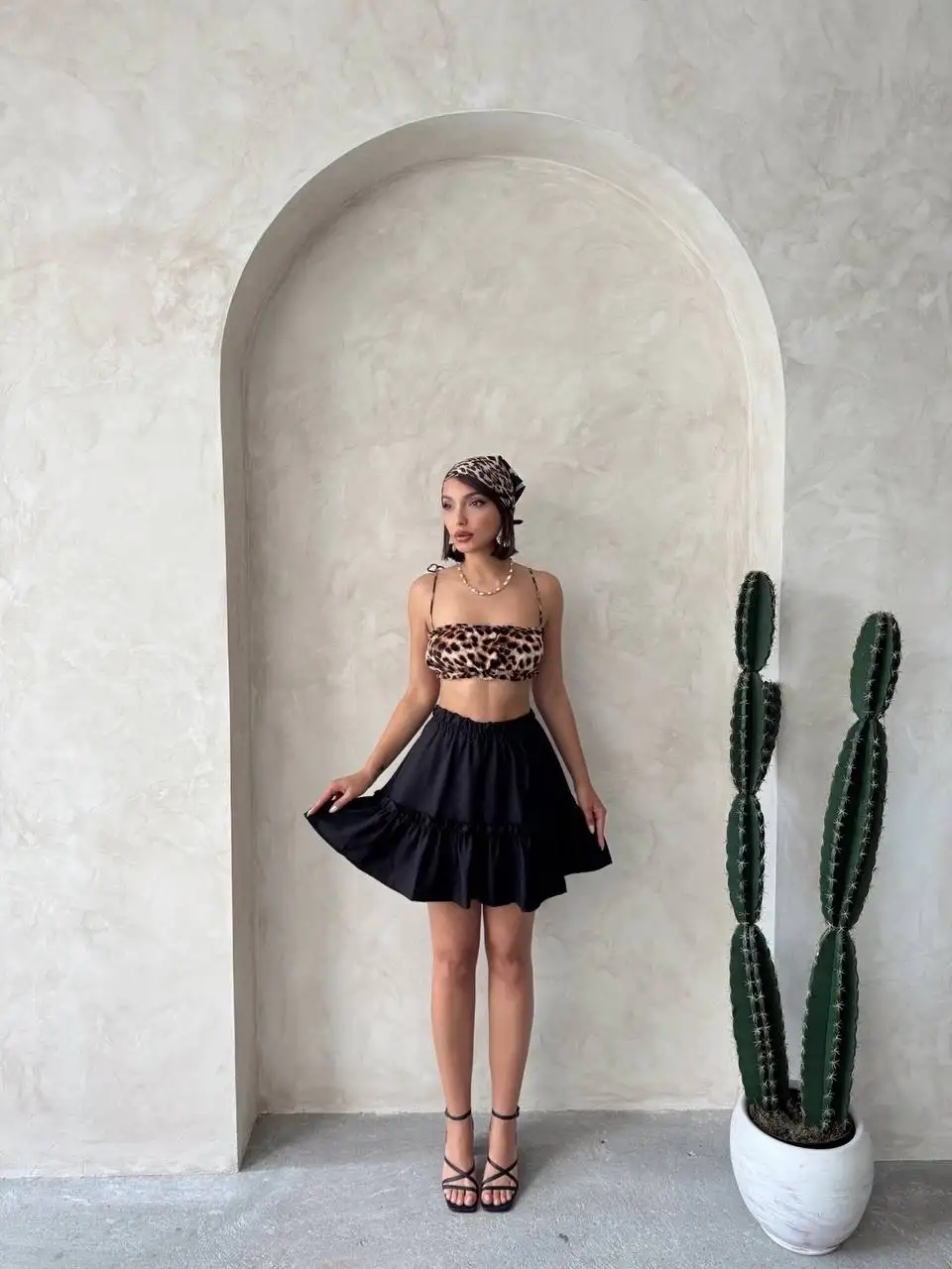 Bu şık siyah etek, Gardrops Kadın Giyim koleksiyonunun vazgeçilmez parçalarından biri. Çingene kesim detayları ile dikkat çeken bu etek, tarzınıza feminen bir dokunuş katacak.
