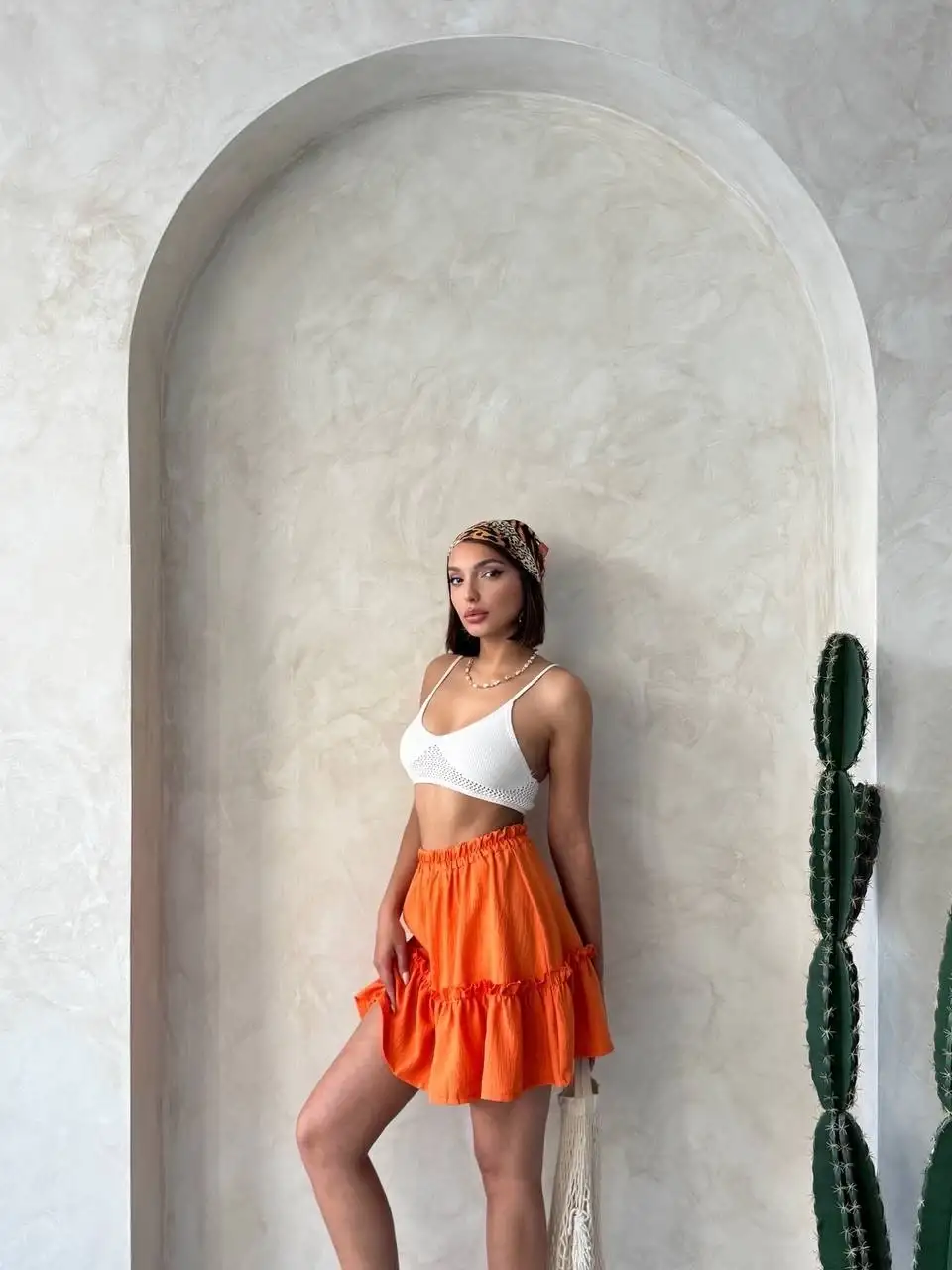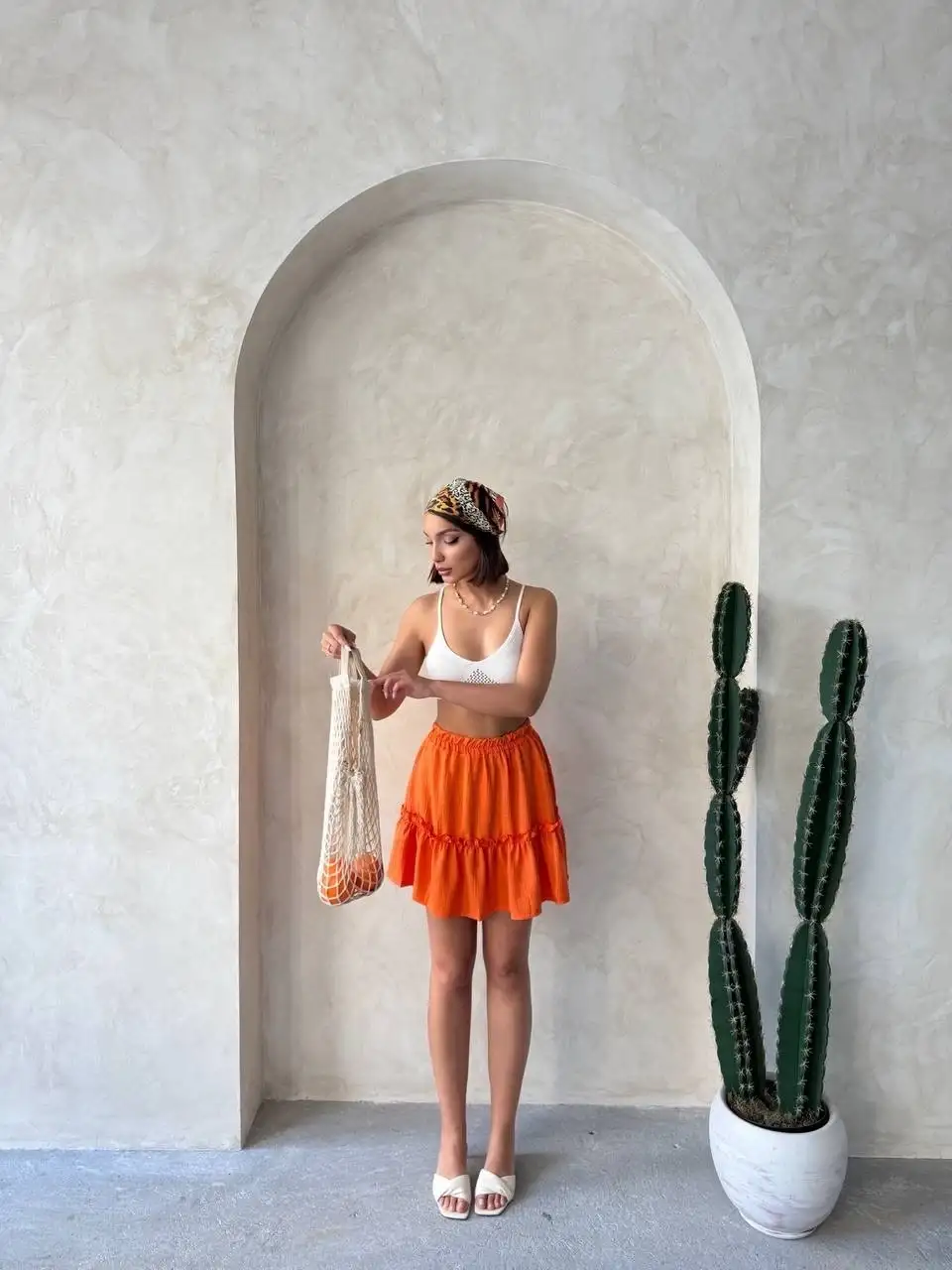 Bu şık ve rahat eteği günlük hayatta, arkadaş buluşmalarında ya da tatil günlerinde tercih edebilir, şıklığınızı konuşturabilirsiniz. Çingene keten etek turuncu s24808, gardırobunuzun vazgeçilmez parçalarından biri olmaya aday!