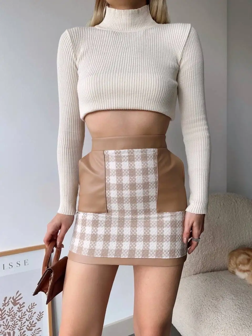 Şıklığı ve zarafeti bir arada sunan Deri Cep Garnili Kaşe Etek Bej H24604, gardırobunuzu tamamlayacak şık bir parça. Hem günlük kullanıma hem de özel günlerde tercih edebileceğiniz bu etek, her stile kolaylıkla uyum sağlar.