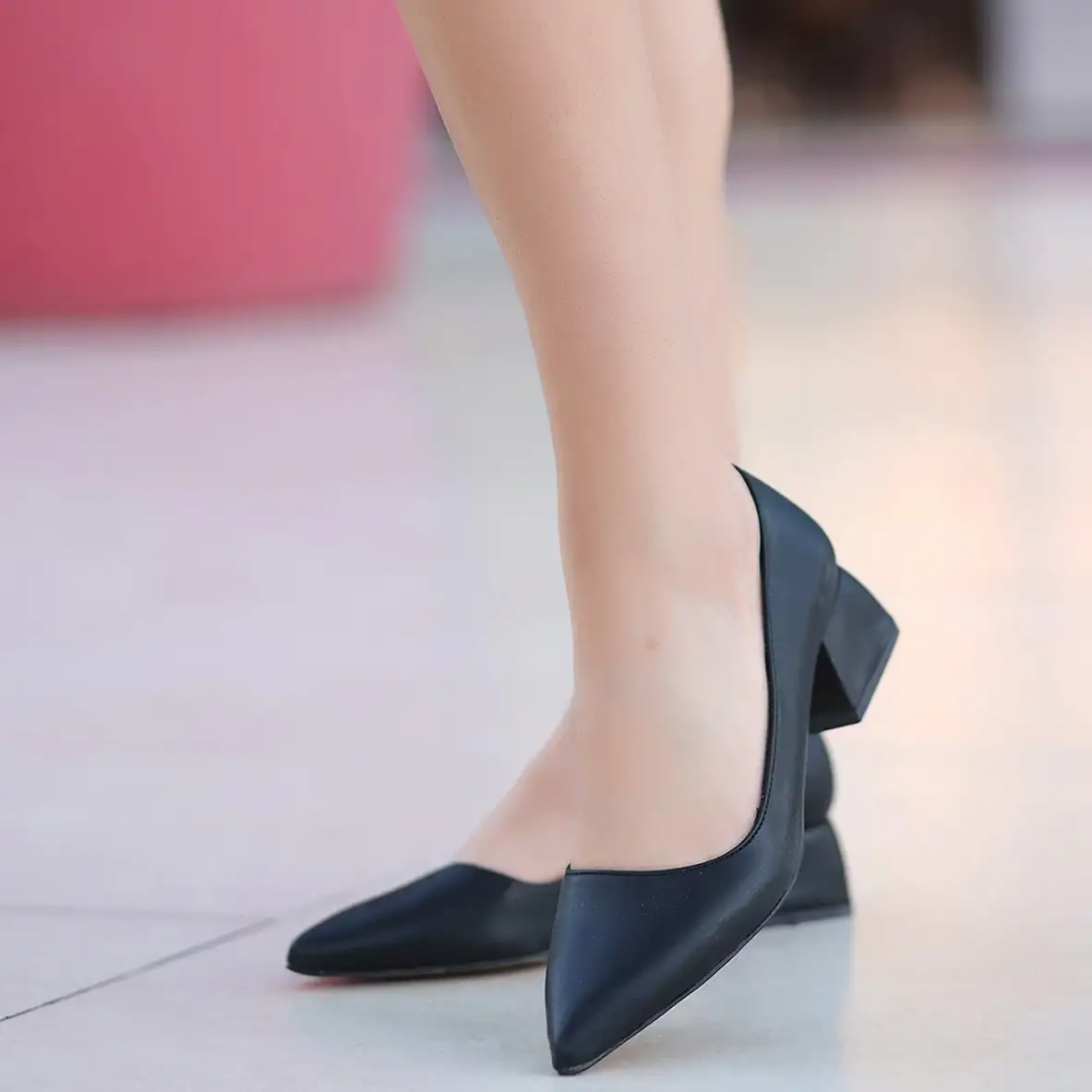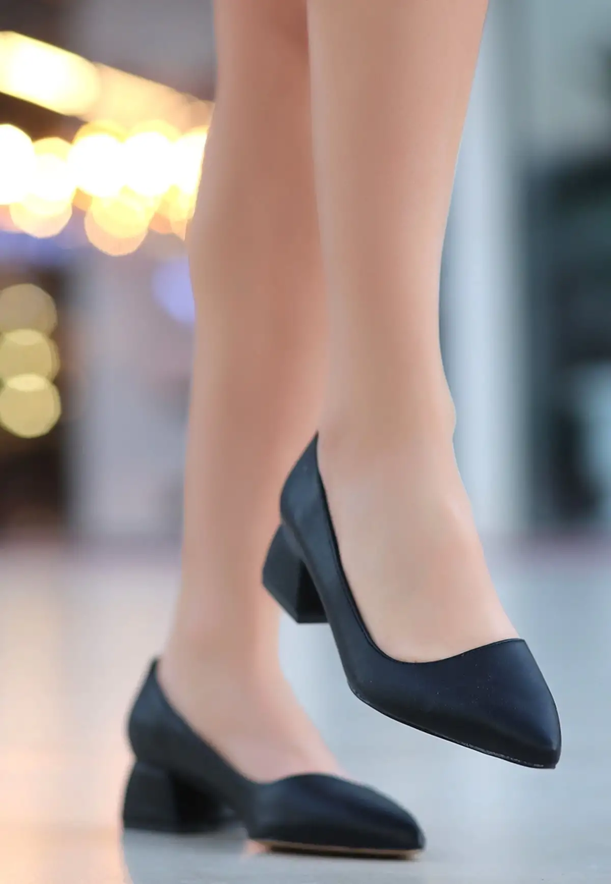 Desniy Siyah Cilt Topuklu Ayakkabı