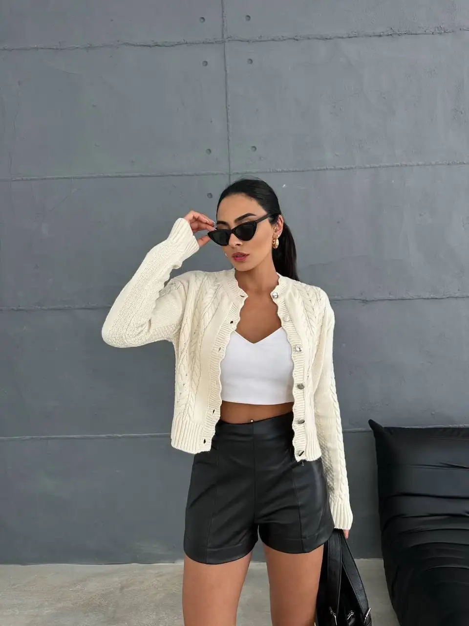 Şıklığı ve konforu bir arada arayan kadınlar için ideal bir seçenek olan Düğme detaylı hırka ekru, şimdi sizleri bekliyor!