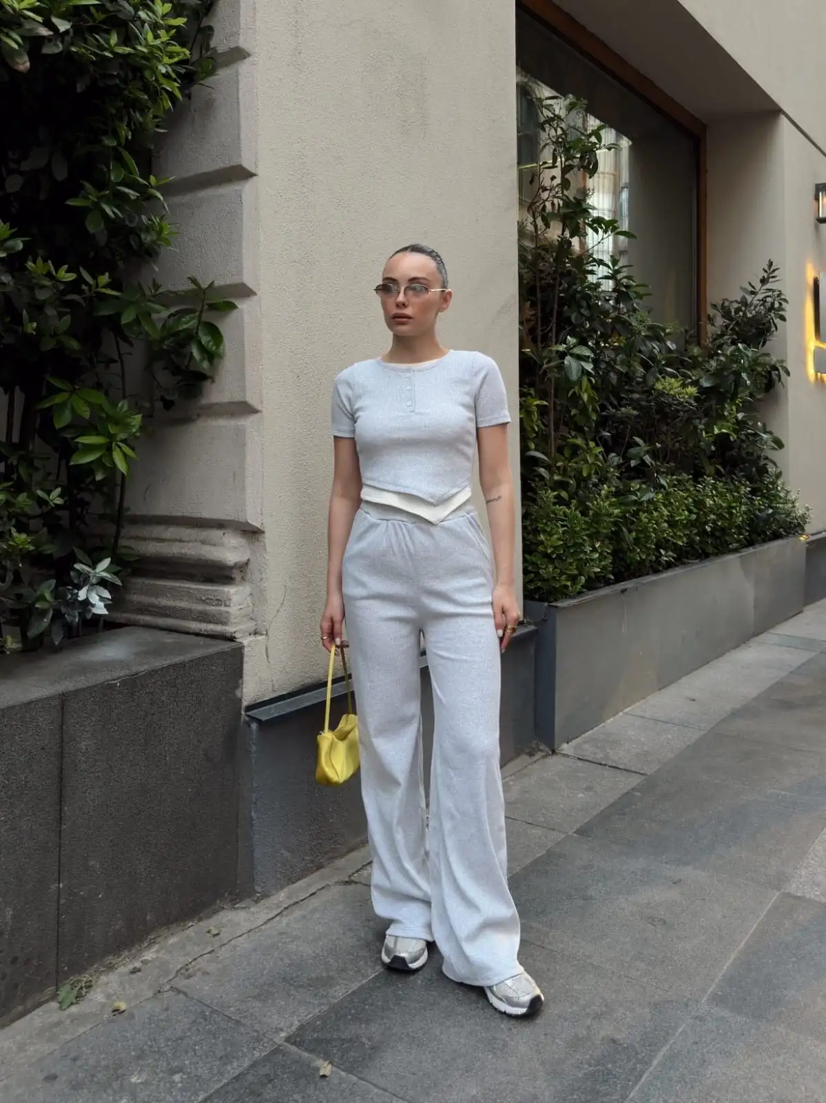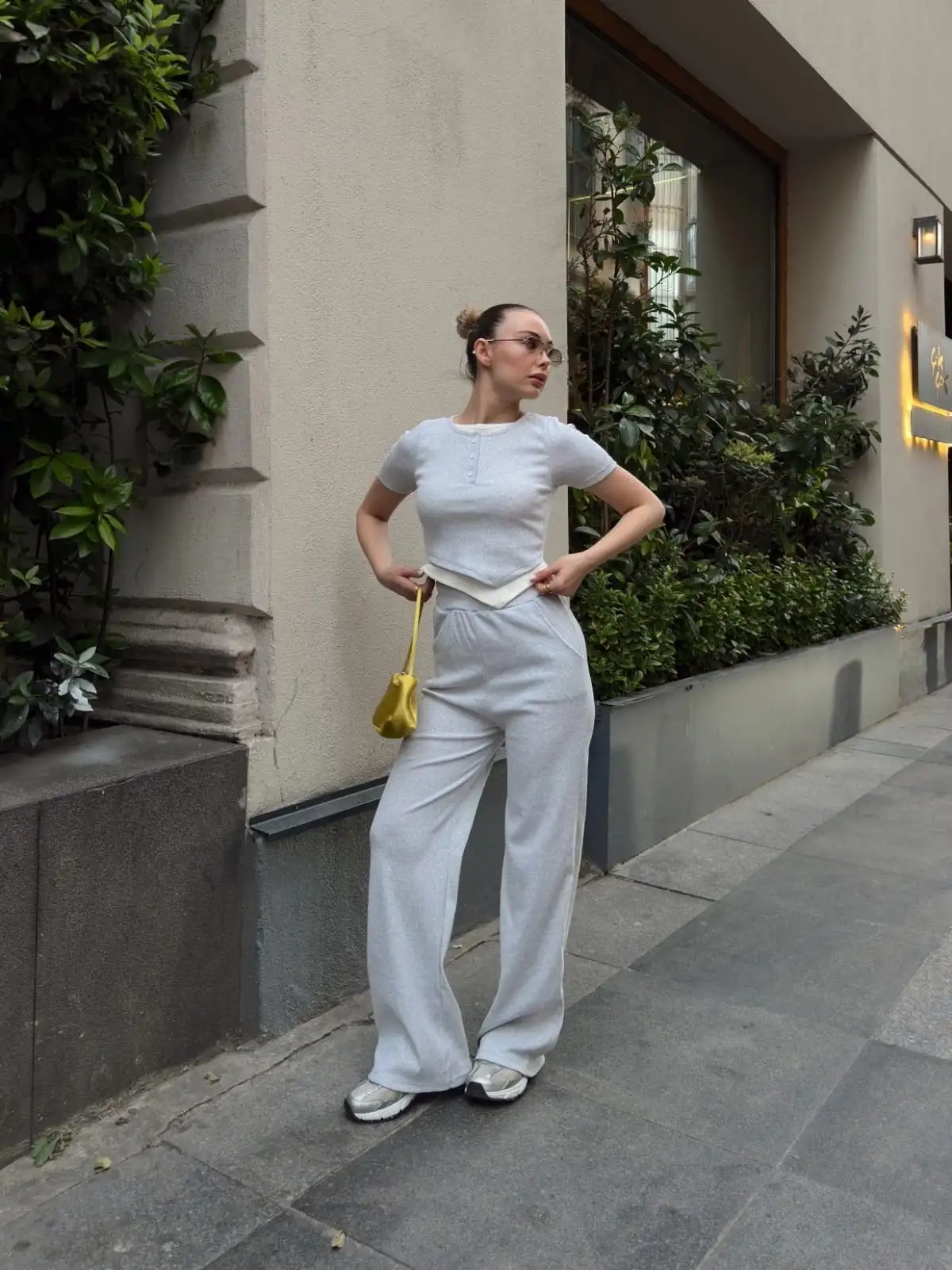 • Alt ve üst parçaların kombiniyle şık bir görünüm sunar.