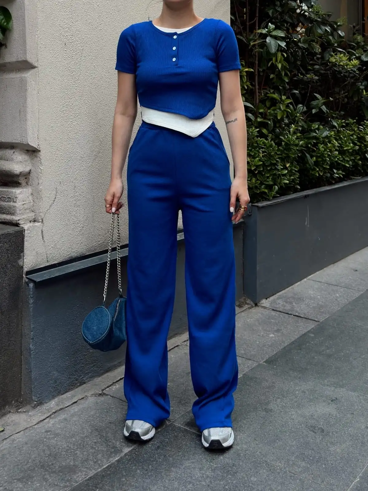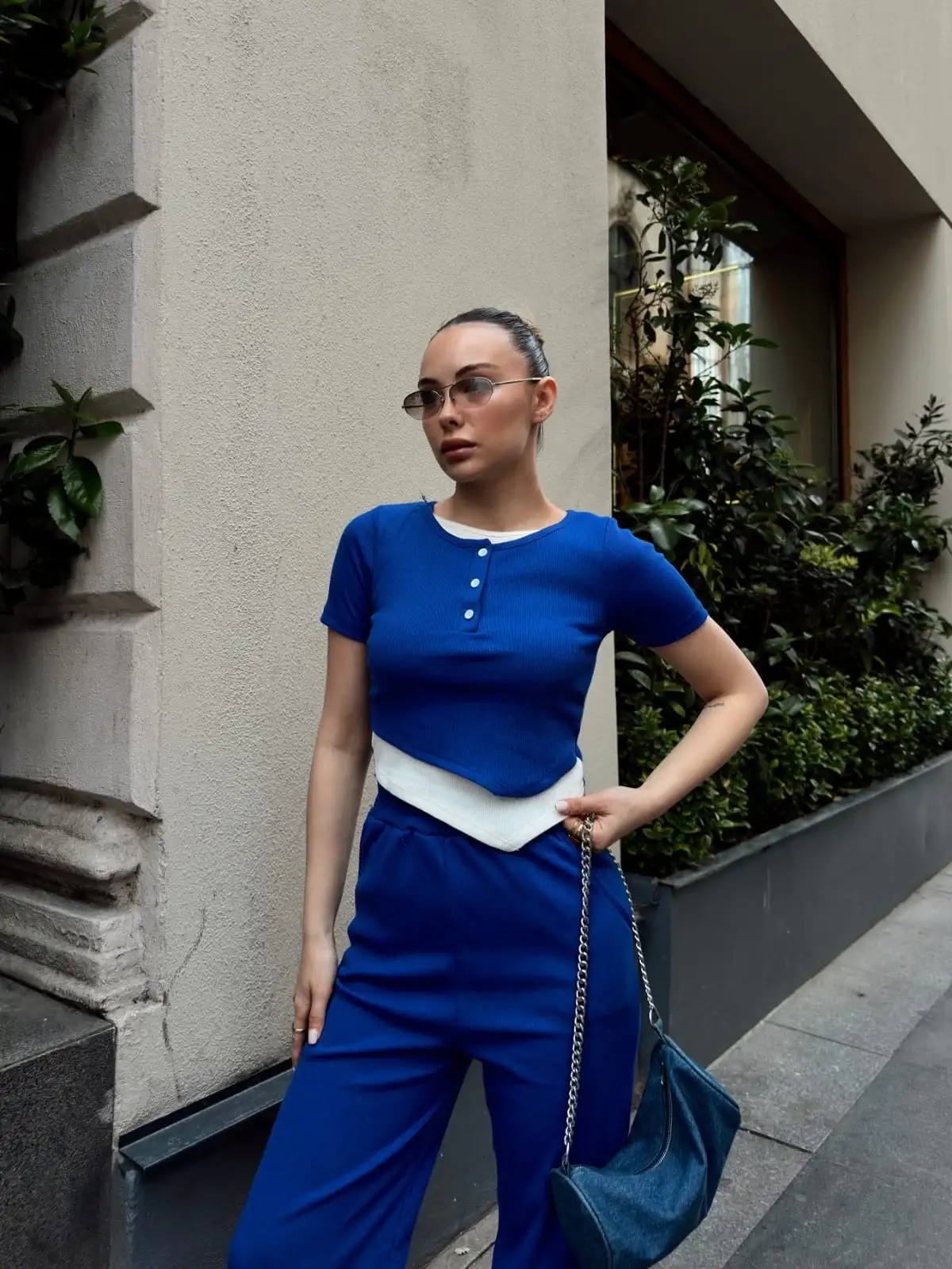 Ürününüzü tamamlayacak şıklıkta bir görünüm için Düğme Yakalı Saks Alt Üst Takım S3943'e göz atın.
