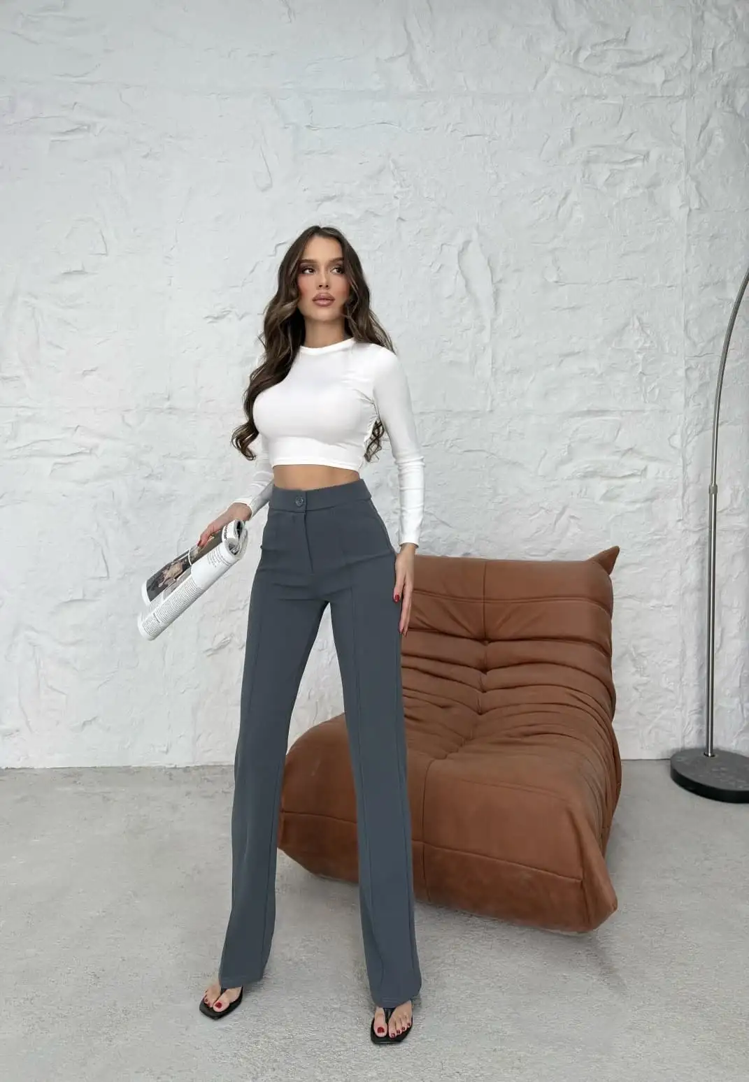• Füme rengi, her kombinle uyumlu olup günlük kullanımdan özel davetlere kadar birçok farklı ortamda tercih edebileceğiniz bir pantolondur.