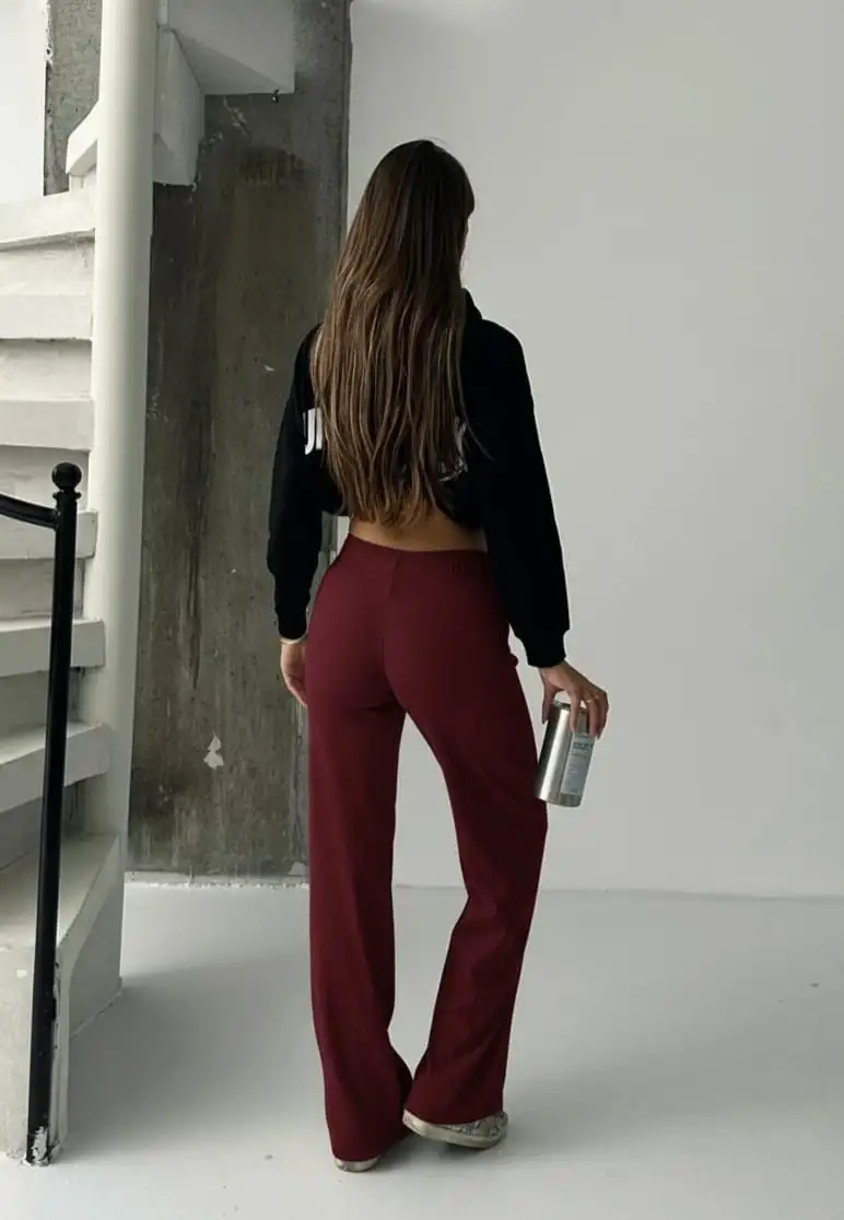 Fit comfort bej salaş pantolon bordo A6011, tarzını ve rahatlığını bir arada arayan kadınlar için ideal bir seçenektir.