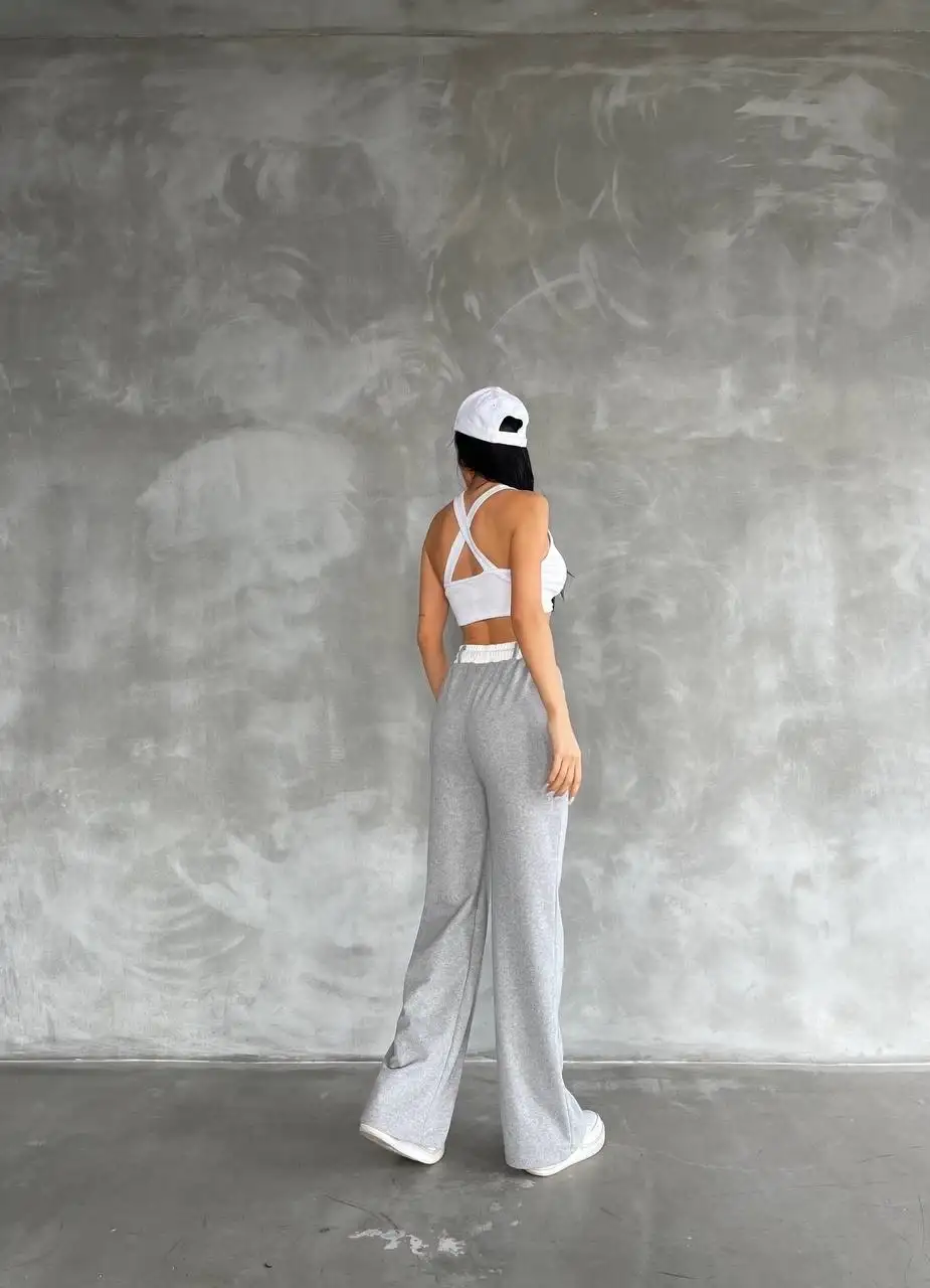 İnce ve zarif garni dokusu pantolonun şıklığını arttırırken, geniş paça tasarımı hareket özgürlüğü sağlar.