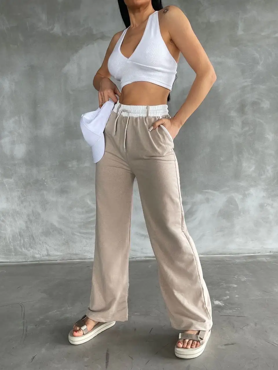 KAZAX Garnili Bol Paça Pantolon, şıklığı ve rahatlığı bir arada sunuyor.