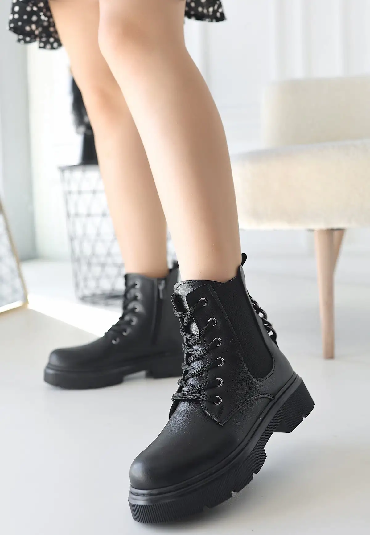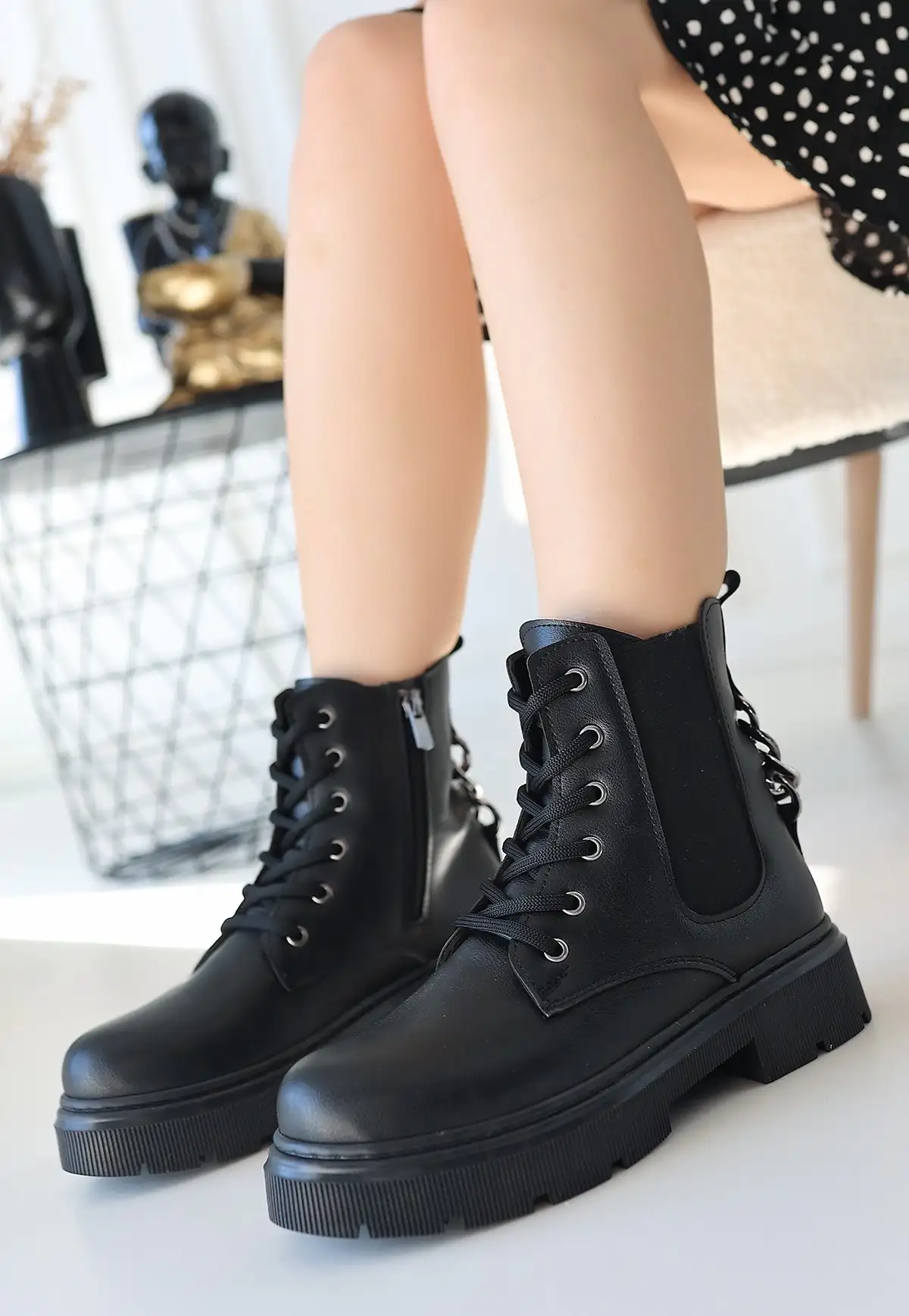 Detay : Topuklu Yandan Fermuarlı Bağcıklı Bot
