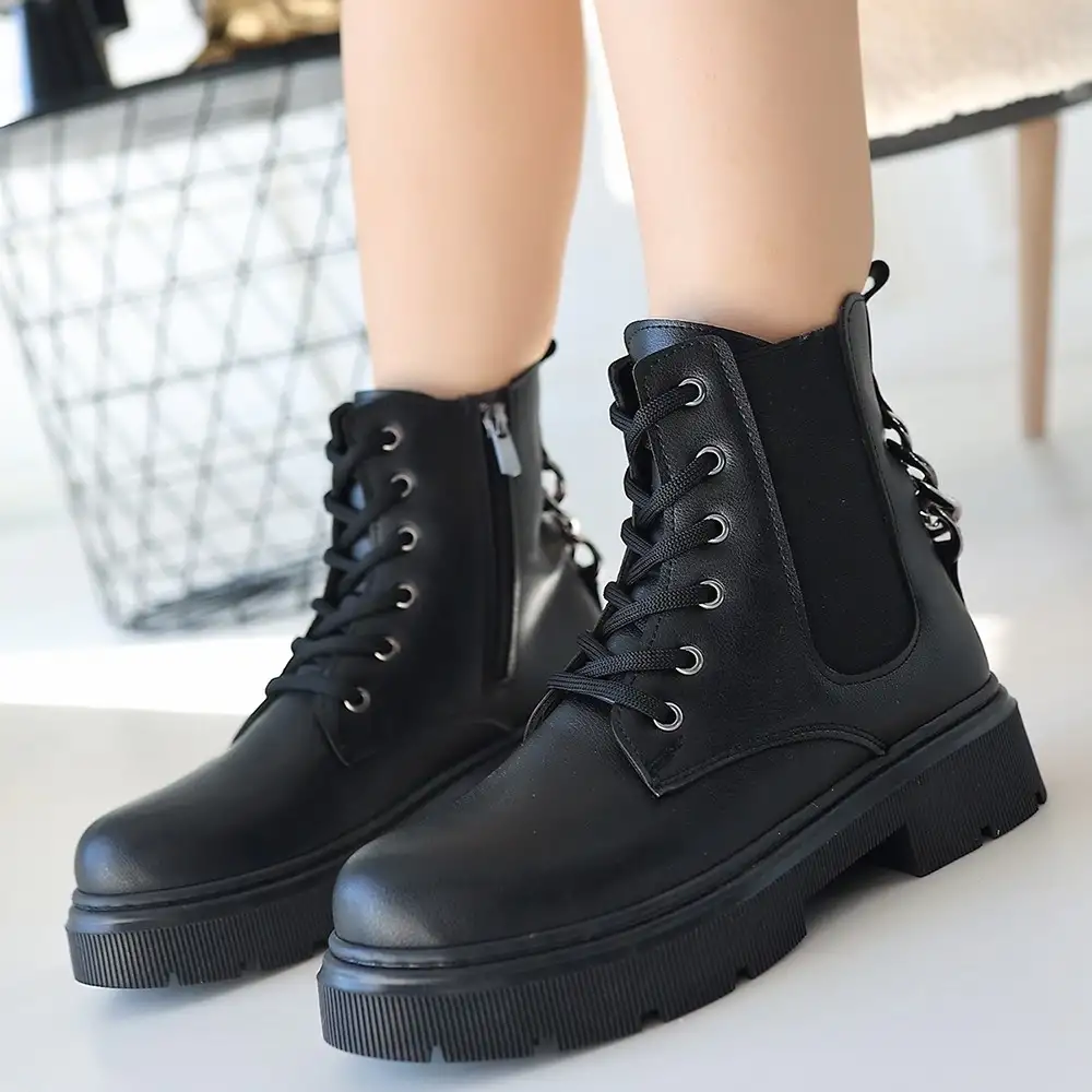 Harte Siyah Cilt Bağcıklı Bot