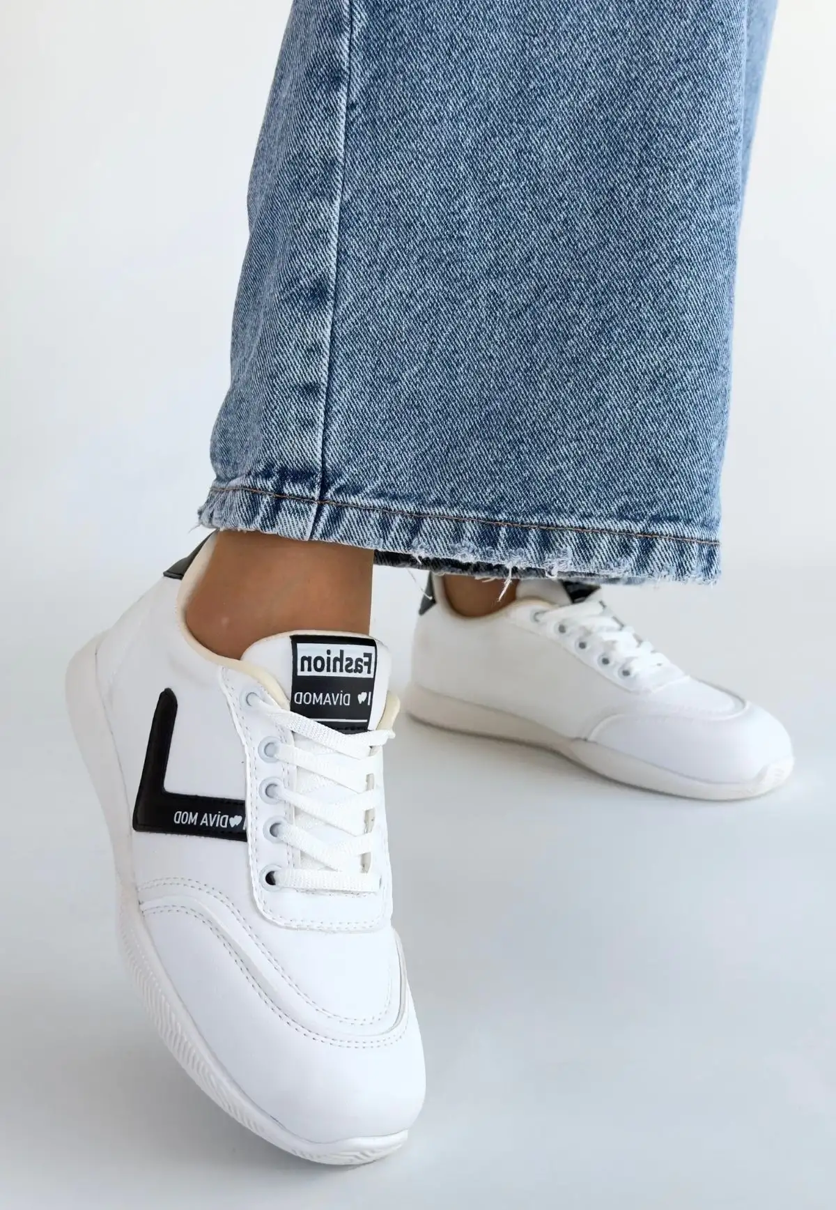 Jowen Beyaz Cilt Siyah Detaylı Bağcıklı Spor Ayakkabı