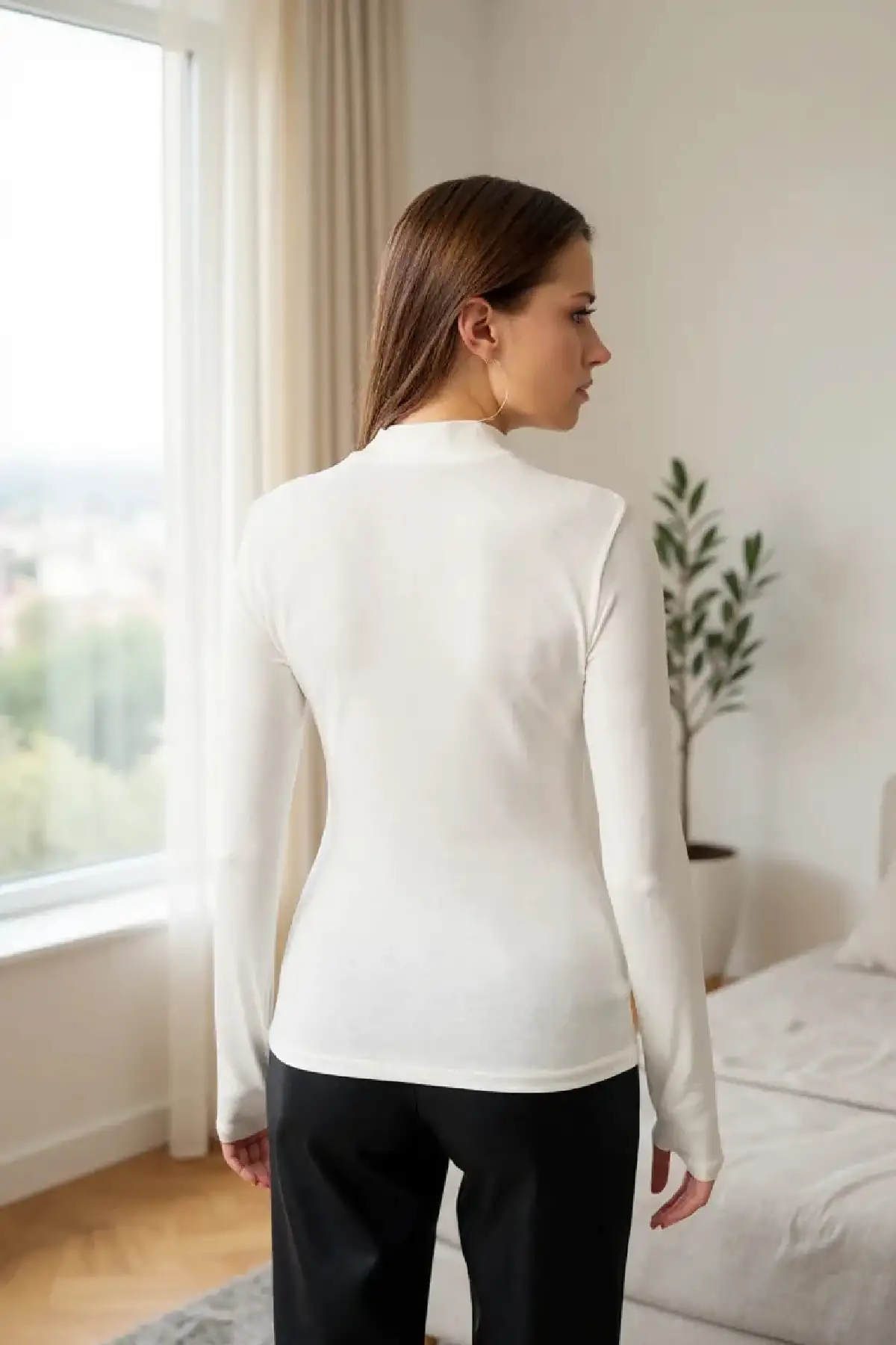 Zarafeti ve sadeliği aynı anda sunan Kadın Beyaz Parmak Detaylı Esnek Uzun Kollu Body, gardırobunuzun en kurtarıcı parçalarından biri olacak.Minimalist tasarımı ve fit kalıbıyla günlük şıklığınızı tamamlar, özel günlerde ise sofistike bir zarafet kazandırır.Esnek kumaş yapısı, gün boyu rahat hareket etmenizi sağlarken vücudu sararak feminen bir görünüm sunar. Parmak detaylı uzun kollu body, beyaz rengin saf ve zamansız havasıyla birleşerek çok yönlü kullanım avantajı sağlar. Dört mevsim rahatlıkla kullanılabilir.Öne Çıkan ÖzelliklerRenk: Beyaz (zamansız ve minimalist)Parmak detaylı uzun kollu tasarımEsnek, yumuşak kumaşFit kalıp, vücuda oturan şık kesimGünlük, ofis ve özel davetlerde kullanım için idealBasic body kategorisinin en çok tercih edilen parçasıKombin ÖnerileriGünlük Şıklık: Jean ve sneaker ile temiz ve spor bir görünümGece Kombini: Siyah etek ve topuklularla klasik beyaz-siyah şıklığıOfis Stili: Takım elbise altına giyilerek profesyonel bir duruşSokak Modası: Salaş pantolon veya şortla casual bir havaYıkama & Bakım Talimatı30°C’de hassas yıkama önerilirÇamaşır suyu kullanılmamalıdırDüşük ısıda tersten ütülenmelidirSererek kurutma tavsiye edilirBu kadın beyaz uzun kollu body, her stile uyum sağlayan kurtarıcı bir parça olacak. Hem sade kombinlerde hem de şık davetlerde zarafetiyle sizi öne çıkarır.]]>
