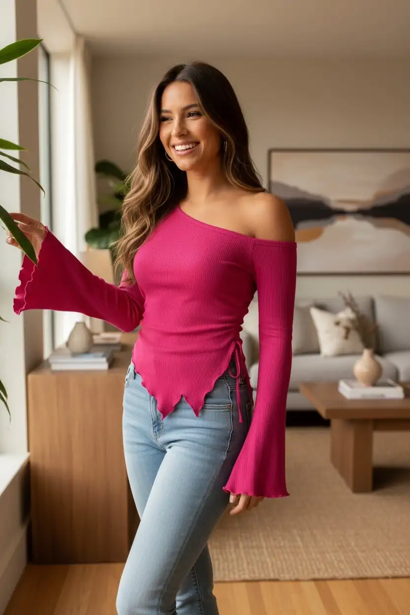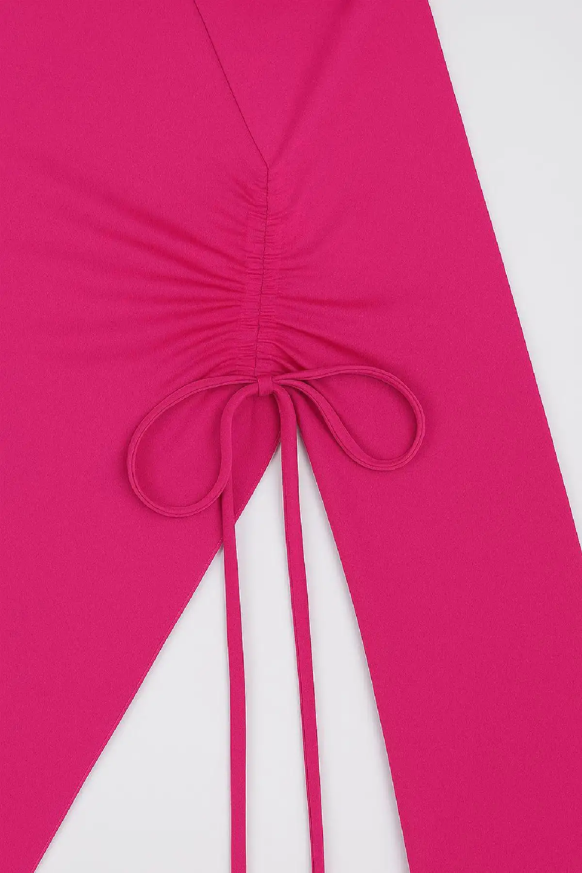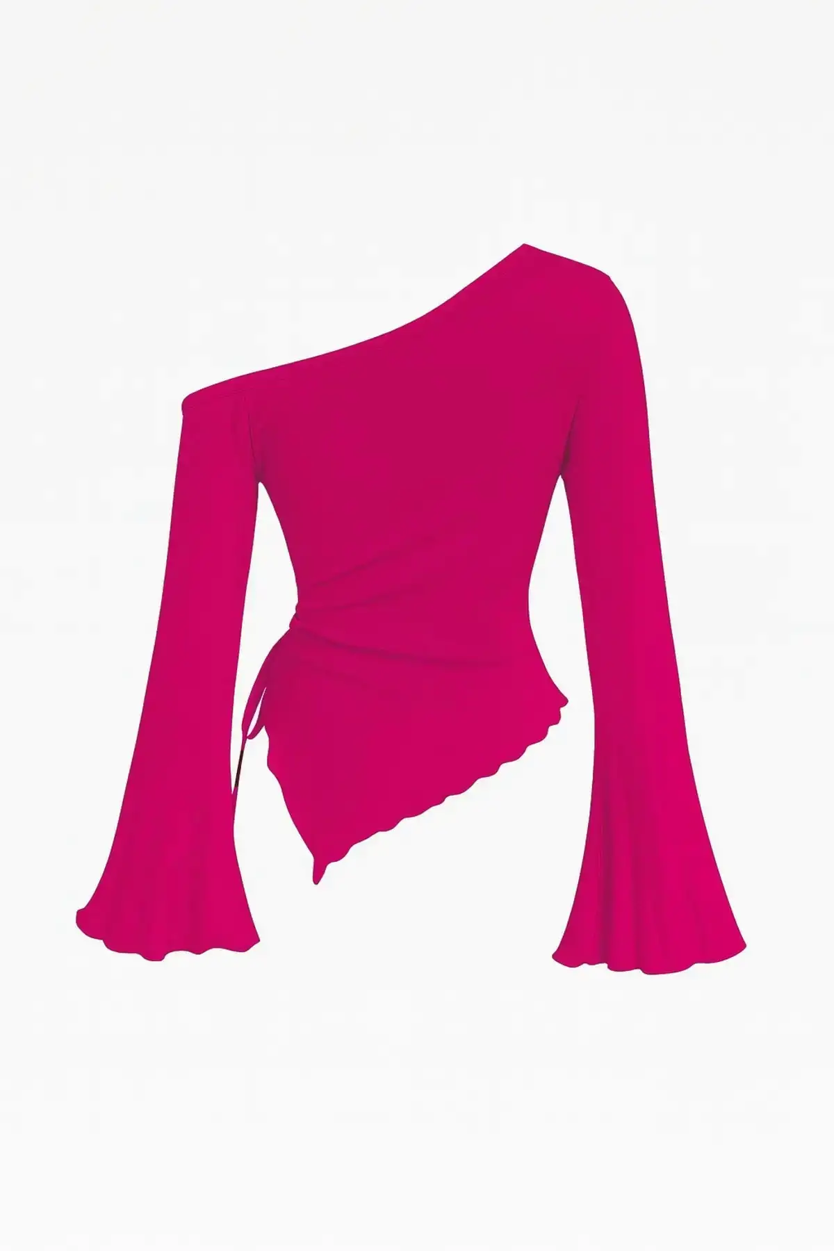 İddialı ama zarif bir görünüm isteyenler için Kadın Fuşya Asimetrik Yaka Drapeli Yan Bağlamalı Bluz, gardırobun en enerjik parçalarından biri olacak.