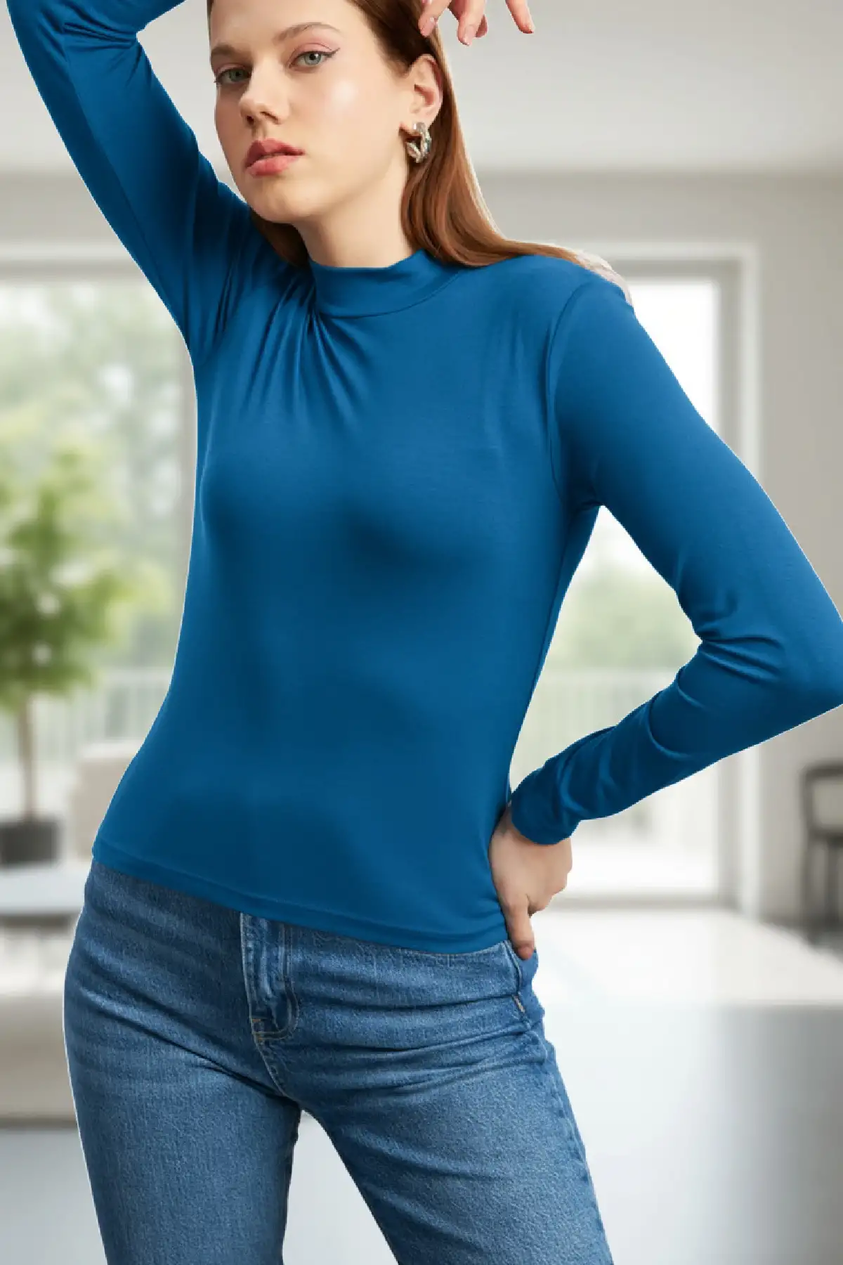 Şıklık ve enerjiyi bir arada sunan Kadın Mavi Parmak Detaylı Esnek Uzun Kollu Body, gardırobunuzun dikkat çeken parçalarından biri olacak.Modern tasarımı ve vücudu saran fit kalıbıyla hem günlük kombinlerde canlı bir hava katar hem de özel davetlerde stilinizi ön plana çıkarır.Esnek kumaş yapısı, gün boyu rahat hareket etmenize imkan tanırken aynı zamanda vücudu sararak feminen bir siluet oluşturur. Parmak detaylı uzun kollu body, mavi rengin enerjik ve modern havasıyla birleşerek dört mevsim kullanabileceğiniz şık bir seçenek sunar.Öne Çıkan ÖzelliklerRenk: Mavi (canlı ve modern)Parmak detaylı uzun kollu tasarımEsnek ve nefes alabilen kumaşFit kalıp, vücuda oturan şık kesimGünlük, ofis ve özel davetlerde kullanım için idealKadın body modasında trend parçaKombin ÖnerileriGünlük Şıklık: Beyaz pantolon ve sneaker ile fresh bir görünümGece Kombini: Siyah deri etek ve topuklu ayakkabıyla iddialı bir stilOfis Stili: Krem veya gri blazer altına giyilerek sofistike kombinSokak Modası: Jean şort ve spor ayakkabı ile genç ve enerjik tarzYıkama & Bakım Talimatı30°C’de hassas yıkama önerilirÇamaşır suyu kullanılmamalıdırDüşük ısıda tersten ütülenmelidirSererek kurutma tavsiye edilirBu kadın mavi uzun kollu body, enerjik rengi ve modern tasarımıyla hem gündelik hem de şık kombinlerde stilinizi tamamlayacak. Gardırobunuza katacağınız bu parça, modaya uyum sağlayan zamansız bir seçenek olacak.]]>