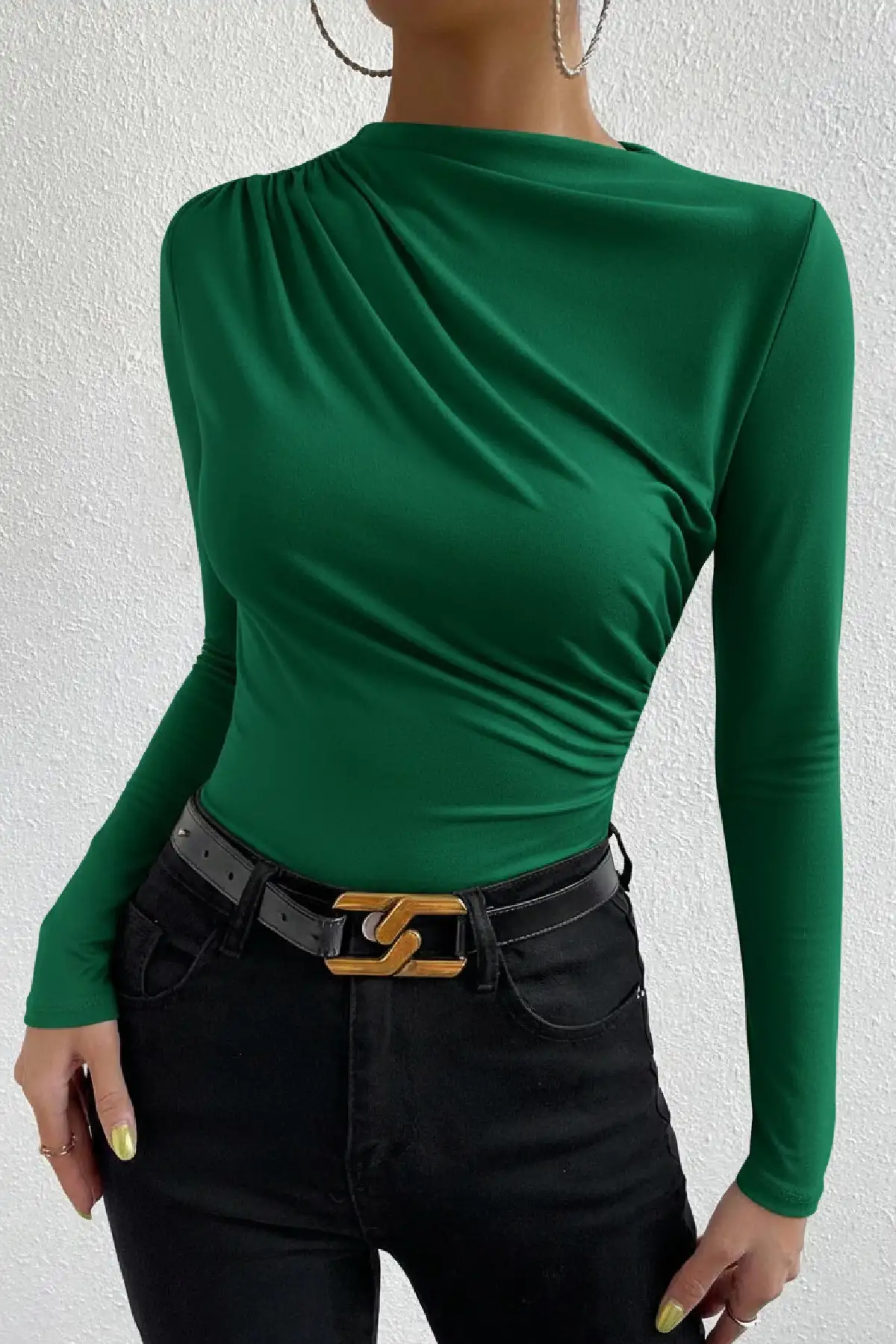 Modern çizgilerle tasarlanmış Kadın Yeşil Belden ve Boyundan Büzgü Detaylı Uzun Kollu Bluz, doğadan ilham alan tonuyla sade ama sofistike bir zarafet sunar.Boyun ve bel kısmındaki zarif büzgü detayları vücuda oturan formu desteklerken, feminen bir siluet oluşturur.Esnek, dökümlü kumaş yapısı sayesinde gün boyu konforlu bir kullanım sağlar.Yeşilin huzurlu ama etkileyici tonu, her mevsimde kullanılabilecek taze bir görünüm kazandırır.Bahar ve sonbahar dönemlerinde tek başına ya da ceketlerle kombinlenebilir, hem ofis hem günlük kombinlere kolayca uyum sağlar.Uzun kollu yapısı ve zarif kesimiyle modern bir sadeliği yansıtır.Bel ve boyun bölgesindeki büzgü detayları, bluzu klasik parçalardan ayıran şık bir dokunuş sunar.Şıklığı rahatlıkla buluşturan bu parça, her tarza kolayca adapte olur.Öne Çıkan ÖzelliklerRenk: YeşilKumaş: Esnek, dökümlü ve nefes alabilirYaka Tipi: Hafif asimetrik, büzgü detaylıKol Tipi: Uzun, dar kesimDetay: Boyun ve bel kısmında büzgü, vücuda oturan tasarımSezon: Bahar / SonbaharStil: Şık – Feminen – GünlükStil ÖnerileriGündüz Şıklığı: Yeşil bluzu krem veya bej pantolonla kombinleyin, altın takılarla tamamlayın.Ofis Kombini: Beyaz veya siyah yüksek bel pantolon ve stiletto ayakkabılarla modern bir görünüm yakalayın.Akşam Şıklığı: Deri etek veya saten pantolonla birleştiğinde zarif bir kontrast yaratın.Günlük Rahat Kombin: Jean pantolon ve sneaker’larla sade ama etkileyici bir görünüm elde edin.Neden Tercih Etmelisiniz?Yeşilin doğal ve ferah tonuyla modern bir zarafet sunar.Büzgü detayları vücut formunu zarifçe ortaya çıkarır.Esnek kumaş yapısı konfor ve şıklığı bir araya getirir.Günlükten geceye geçişi kolaylaştıran çok yönlü bir tasarımdır.Kadın Yeşil Belden ve Boyundan Büzgü Detaylı Uzun Kollu Bluz, doğanın tazeliğini modern çizgilerle buluşturuyor.Zarif, sade ve güçlü bir stil için ideal bir seçim!]]>