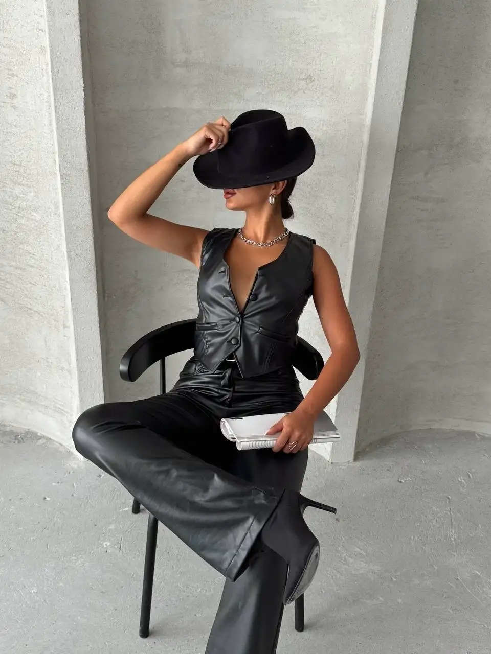 Kaplama düğmeli deri yelek düğme ve şık tasarı günlük hayatta ve özel günlerde kullanılabilir özgün bir parça