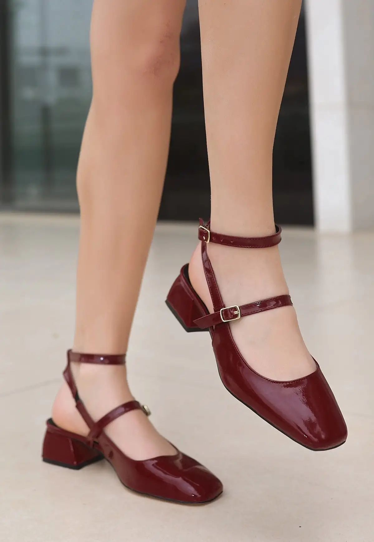 Karmi Bordo Rugan Topuklu Ayakkabı