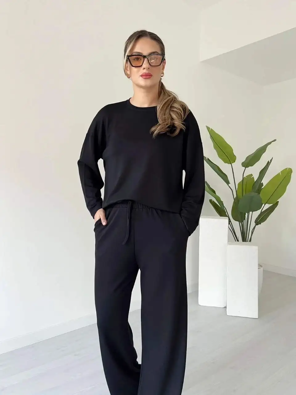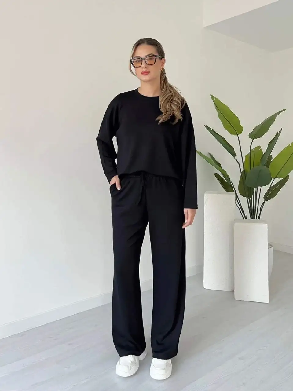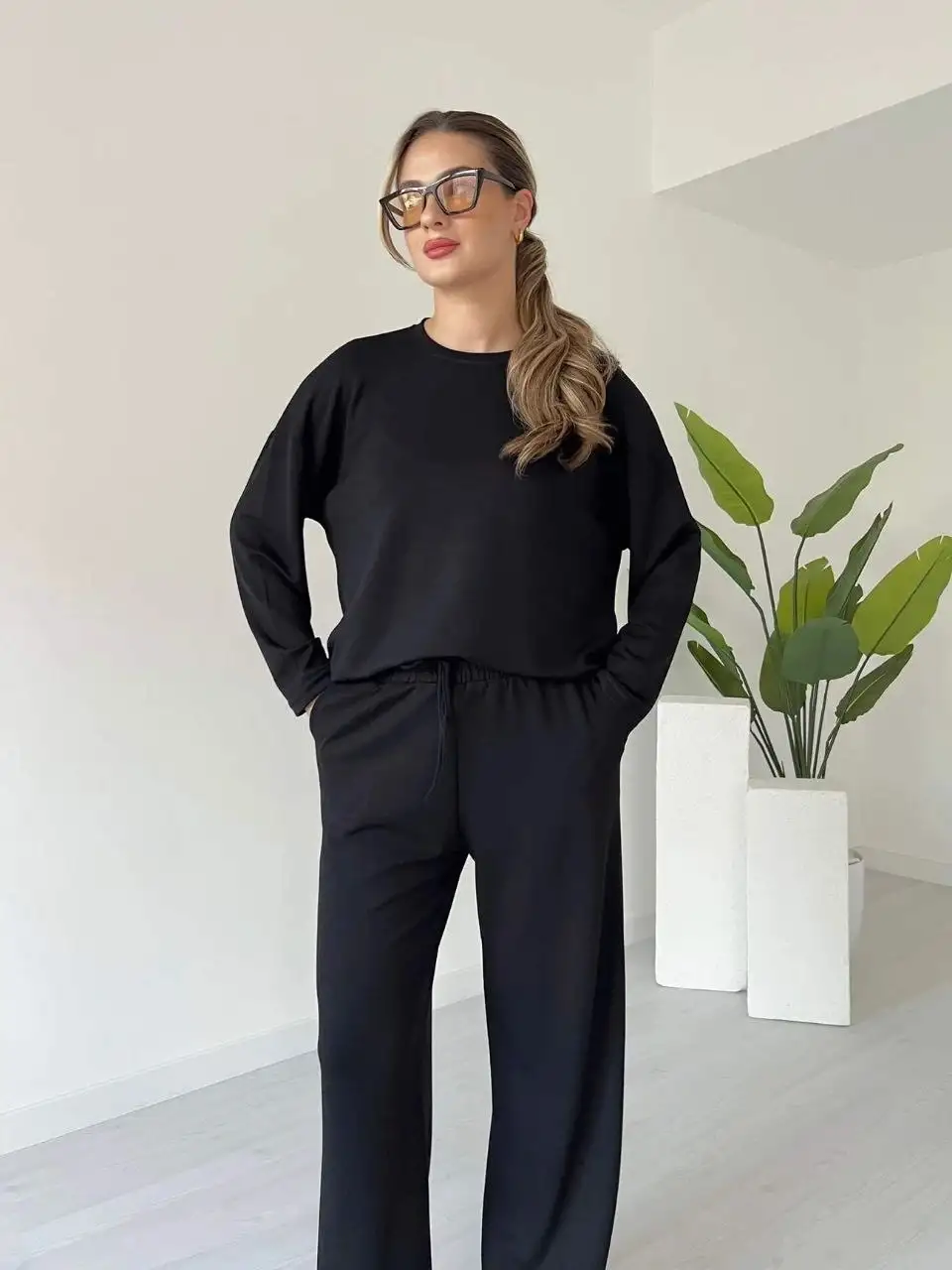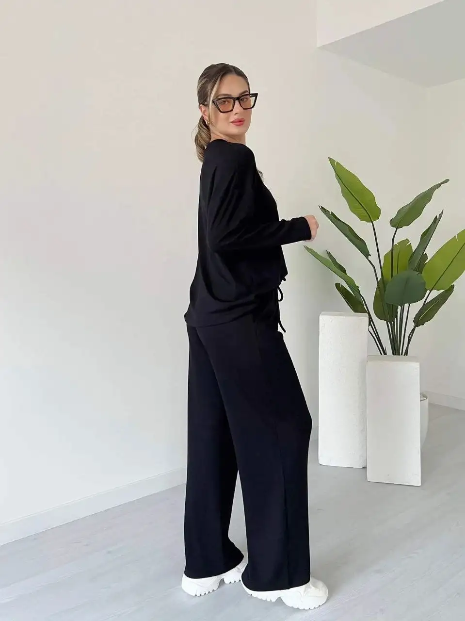 KAZAX markasının şık ve rahat tasarımıyla öne çıkan Siyah Kollu Modal Takım, kadın giyim koleksiyonunda yerini alıyor.