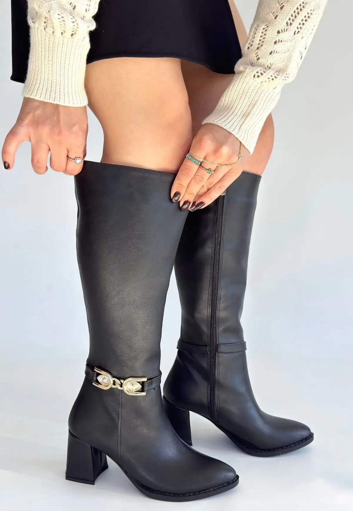 Detay : Topuklu Yandan Fermuarlı Diz Altı Çizme