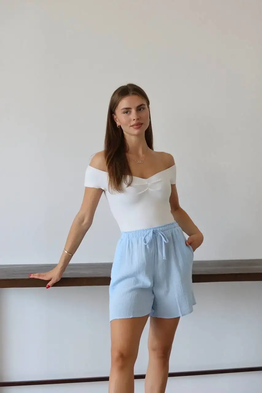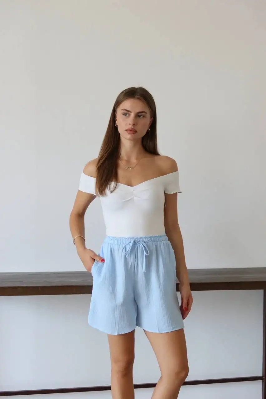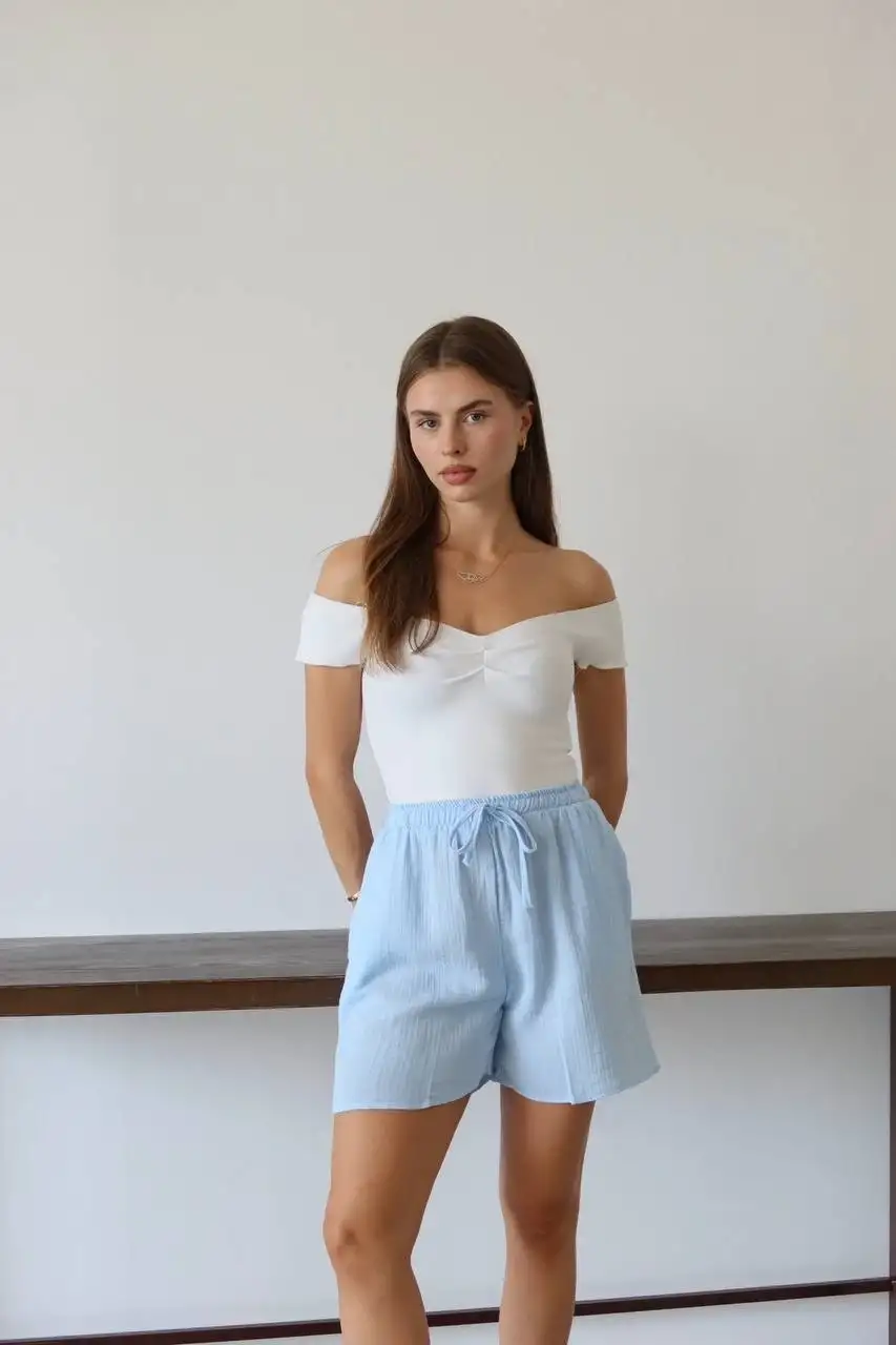 Müslin kumaş şort bağcıklı mavi pt