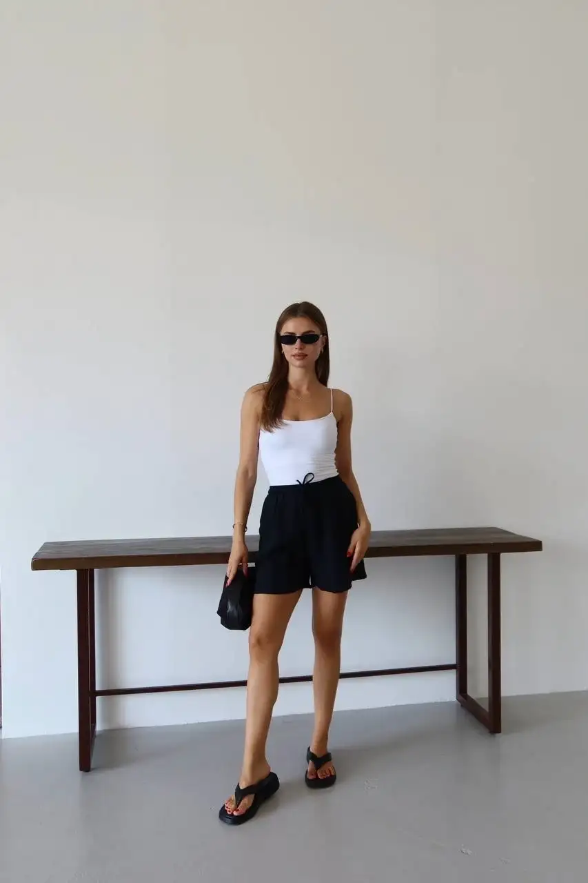 Müslin kumaş şort bağcıklı siyah pt