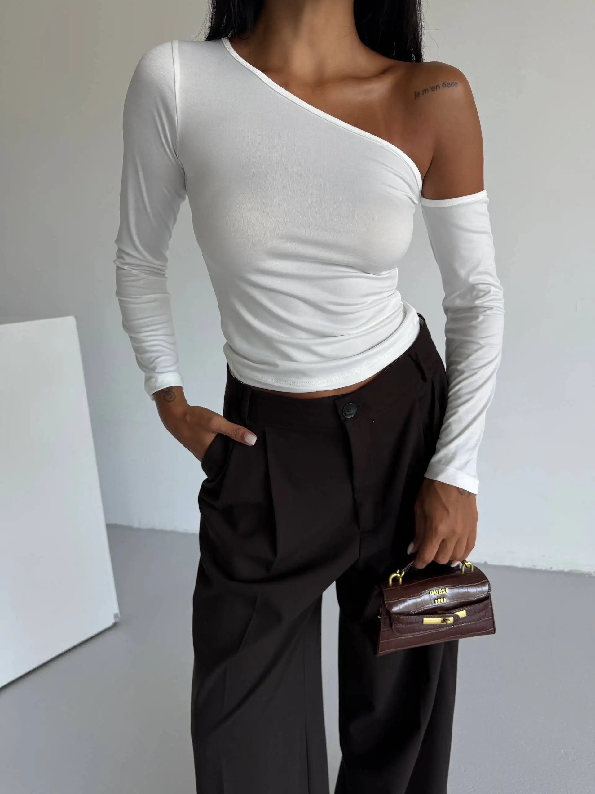 Omuz detaylı kollu bluz beyaz f2336, şıklığı ve rahatlığı bir arada sunar. Hem günlük kullanıma hem de özel günlerde tercih edebileceğiniz bir parçadır.