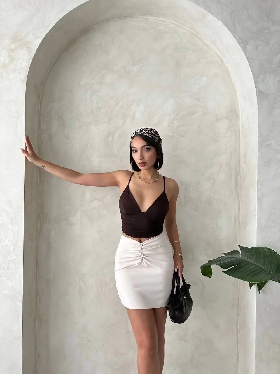Şık ve modern tasarımı ile dikkat çeken önü büzgülü etek