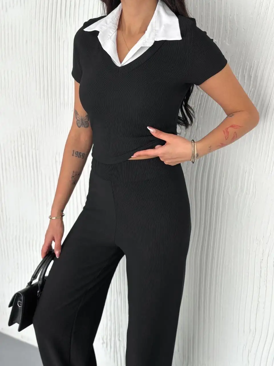 Ottoman kumaşın zarif dokusunu taşıyan bu beyaz gömlek yaka takım, gardırobunuzun vazgeçilmezi olmaya aday! Hem şık hem de rahat tasarımı ile günün her anında şıklığınızı ön plana çıkaracak.