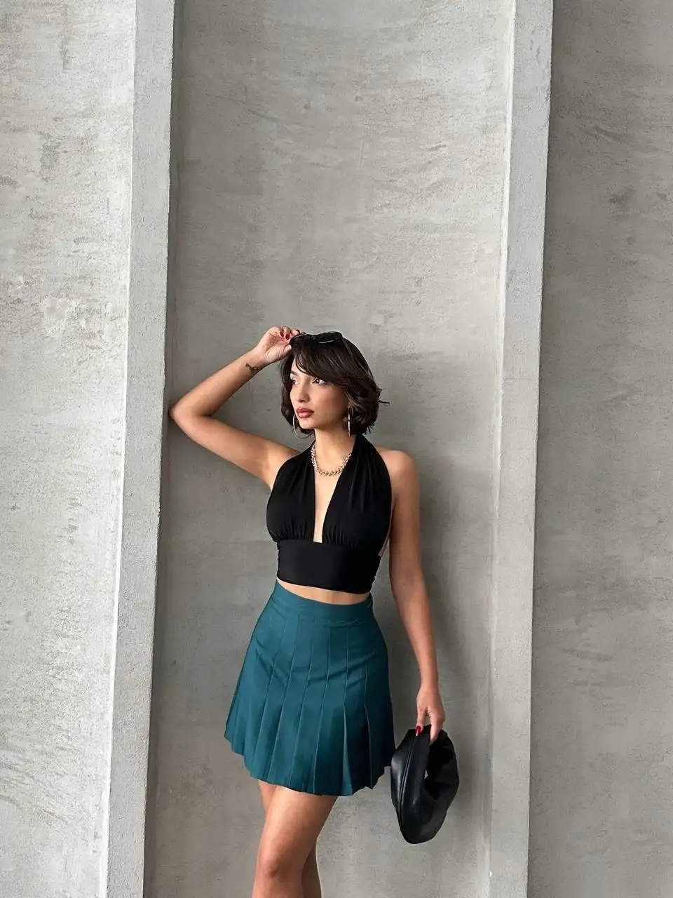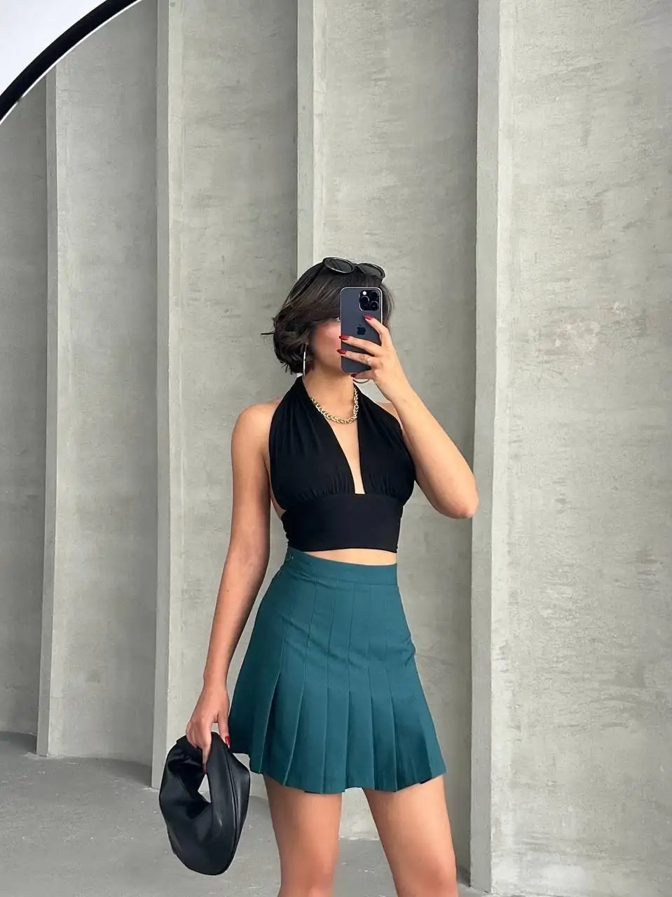 Çok şık ve trend bir görünüm elde etmenizi sağlayacak olan Yeşil Pileli Düğmeli Etek, gardırobunuzun vazgeçilmez parçalarından biri olmaya aday! Hem şık hem de rahat kesimi ile günlük hayatta veya özel davetlerde tercih edebileceğiniz bu etek, tarzınızı yansıtmanızı sağlayacak.