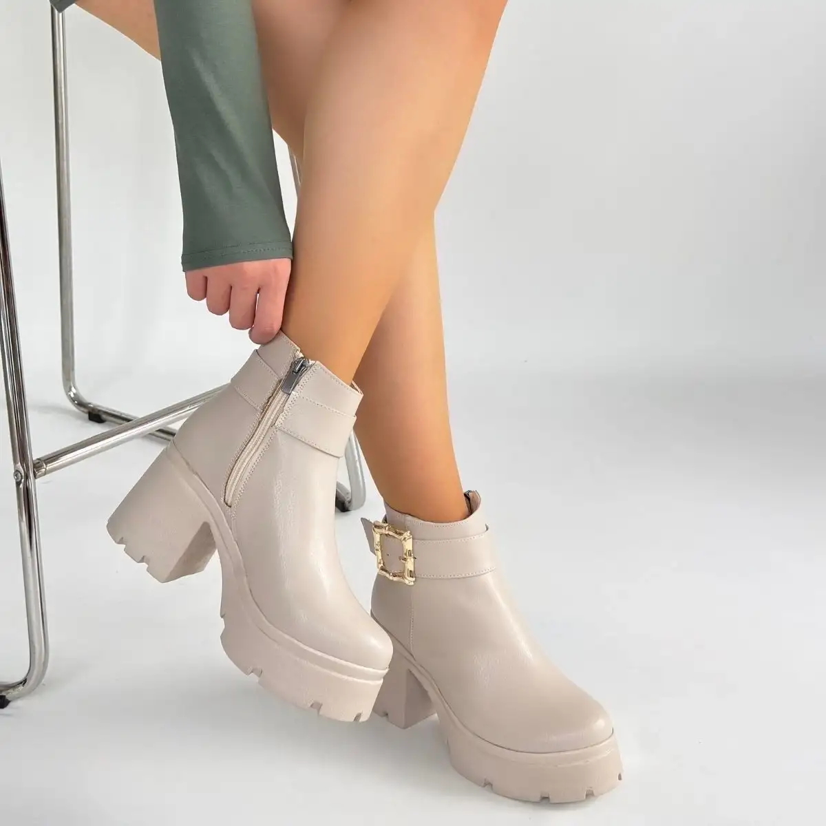 Detay: Topuklu Yandan Fermuarlı Bot