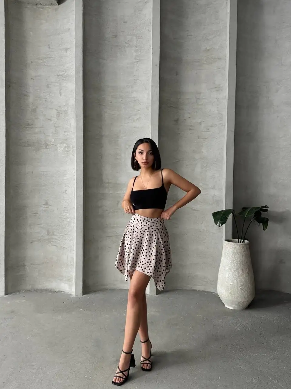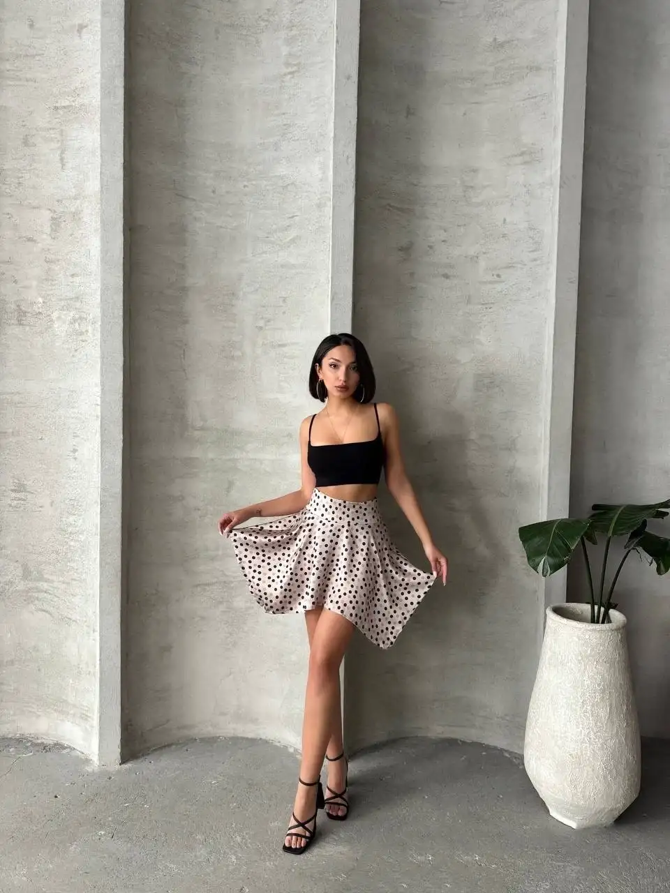 Şıklığı ve zarafeti bir arada sunan Puantiyeli Etek S25900, gardırobunuzun vazgeçilmez parçalarından olmaya aday!