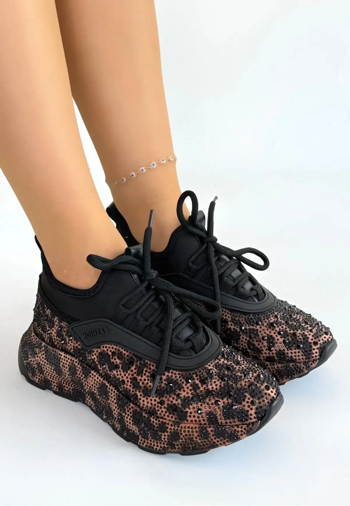 Rimay Kahverengi Cilt Boncuk İşlemeli Spor Ayakkabı