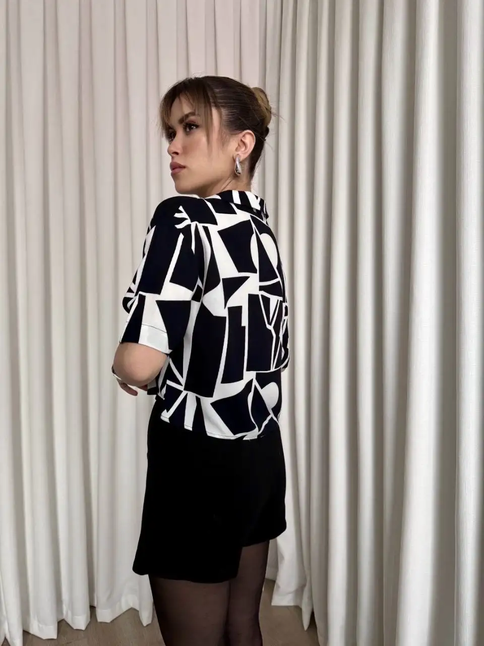 KAZAX Siyah Beyaz Baskılı Crop Gömlek ile tarzınızı konuşturun!