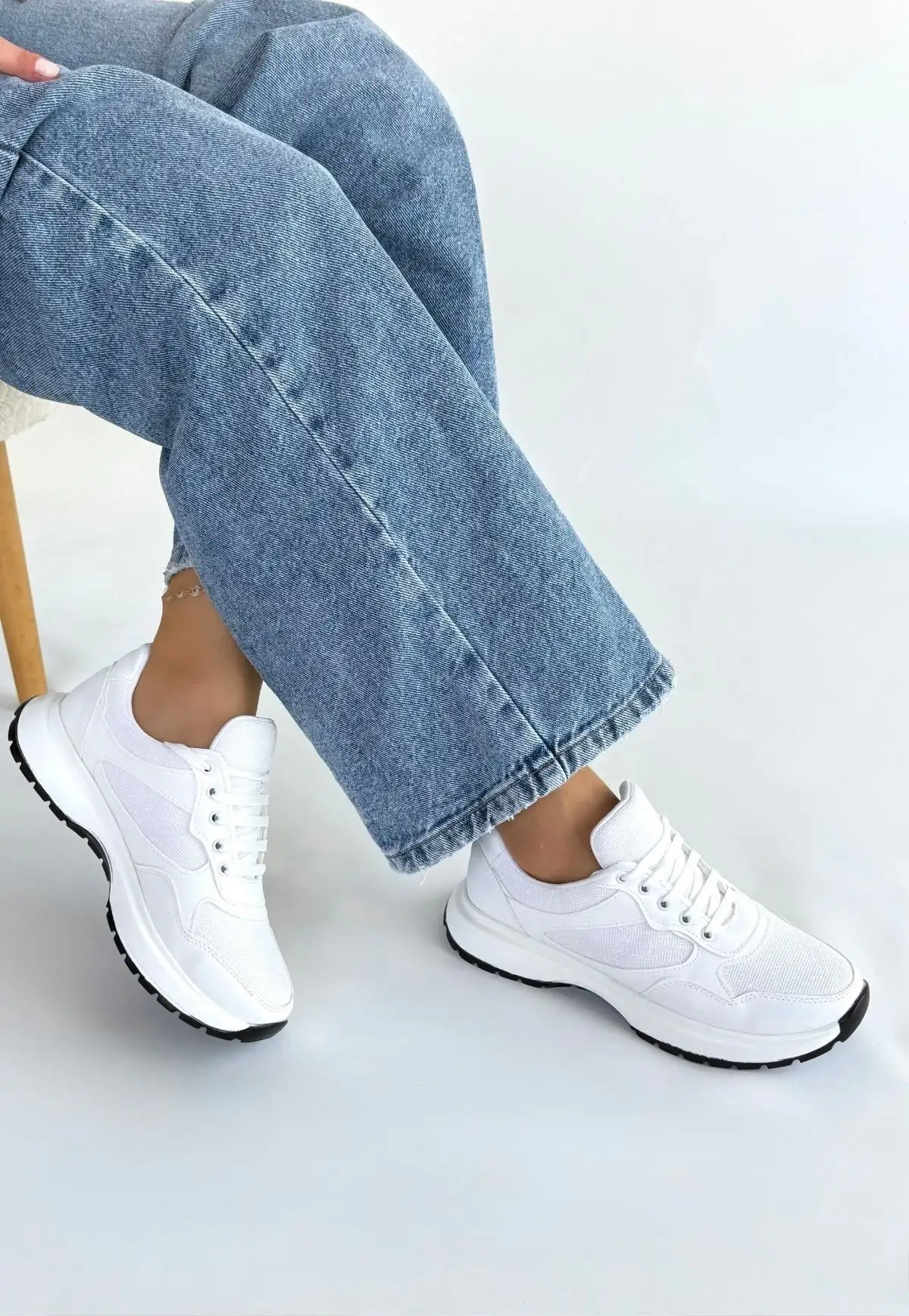 Slar Beyaz Cilt Bağcıklı Spor Ayakkabı