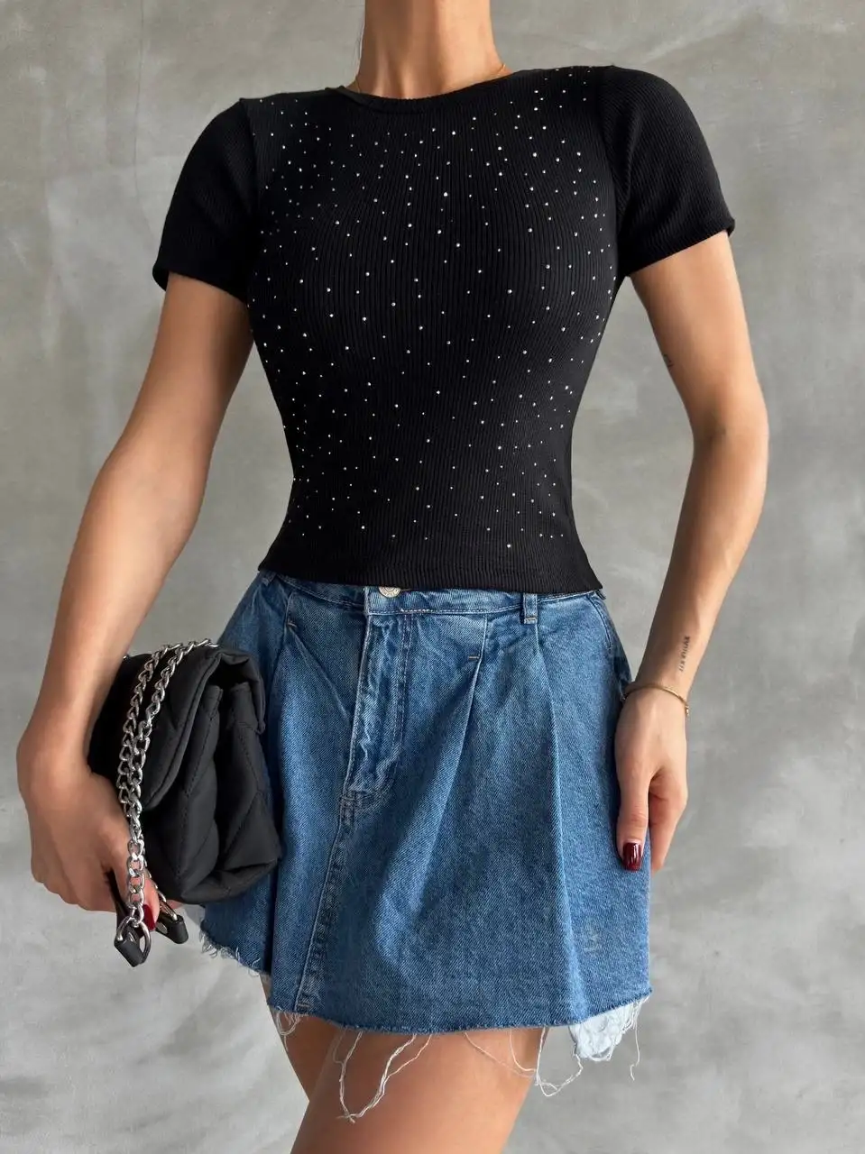 Taş baskılı kaş korse bluz