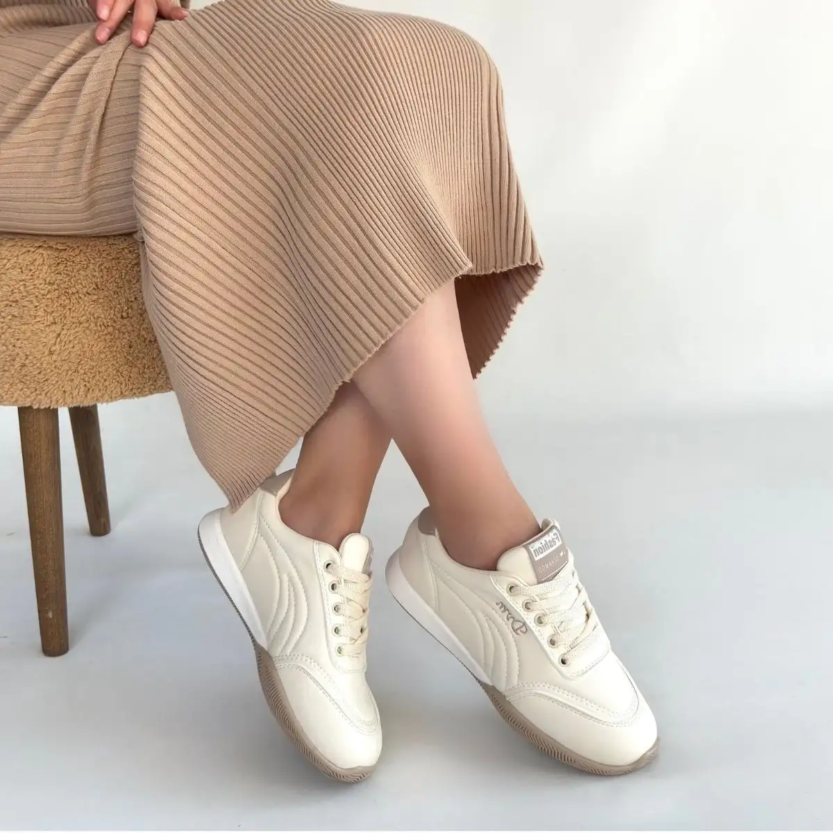Tawen Bej Cilt Bağcıklı Spor Ayakkabı