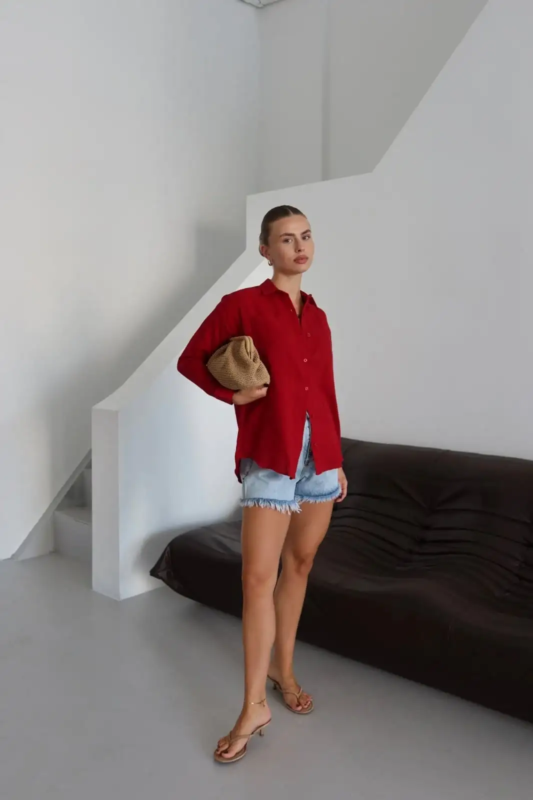 Şıklığı ve rahatlığı bir arada sunan Tek Cep Müslin Gömlek ile tarzınızı ön plana çıkarın. Bordo rengi ile dikkat çeken gömlek, şık detaylarıyla göz kamaştırıyor.