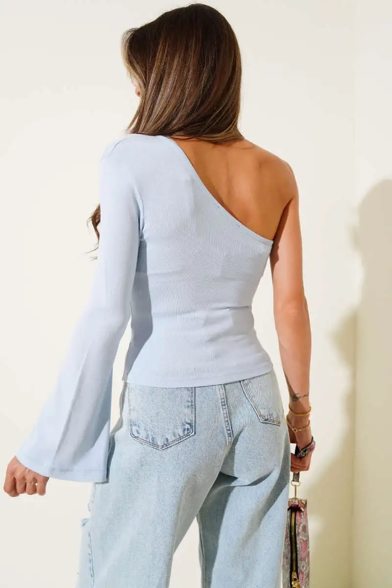 Şıklığı ve tarzı ön planda tutan Tek Omuzlu Basic Bluz Mavi T4275, gardırobunuzun vazgeçilmez parçalarından biri olmaya aday!