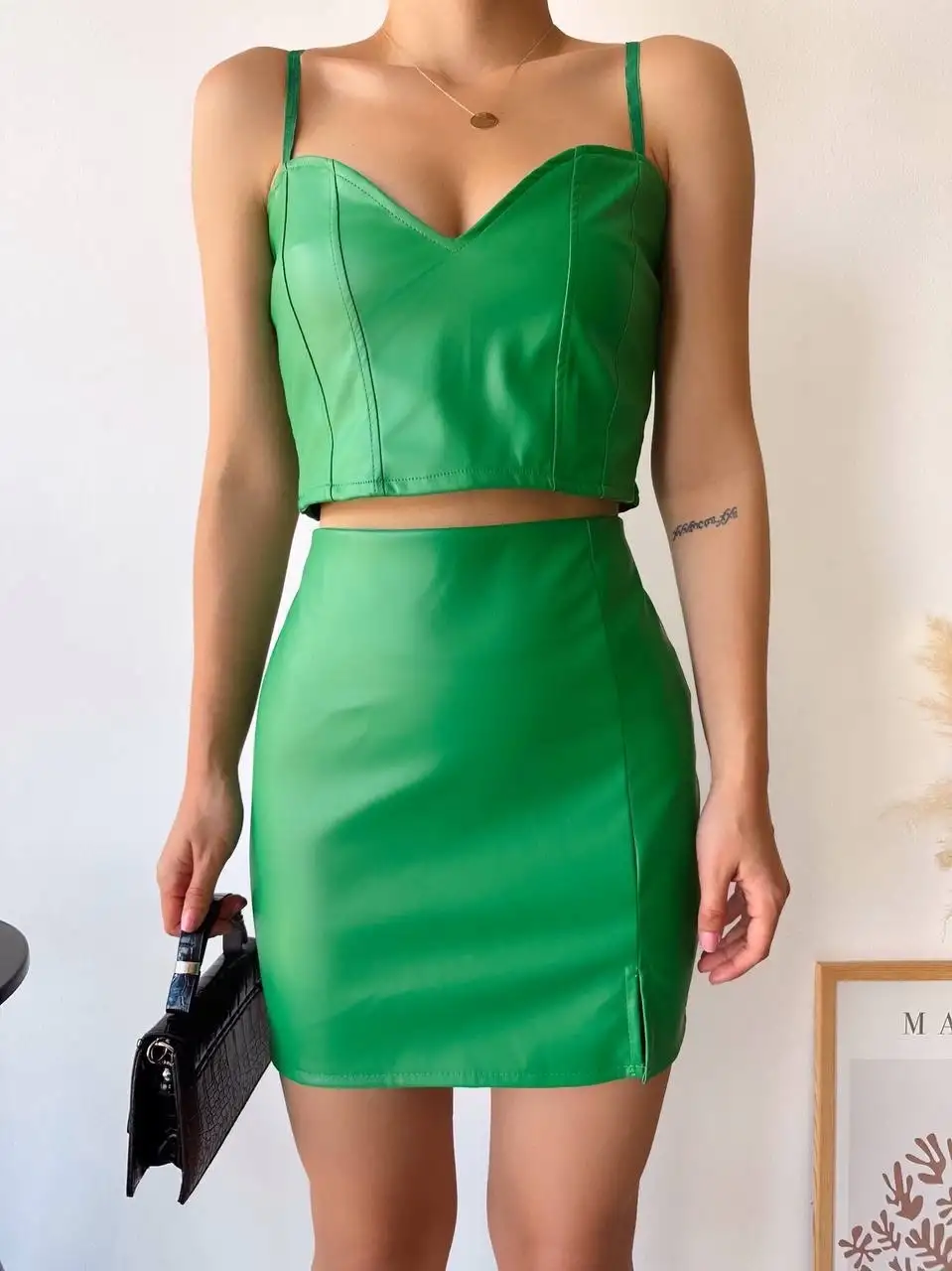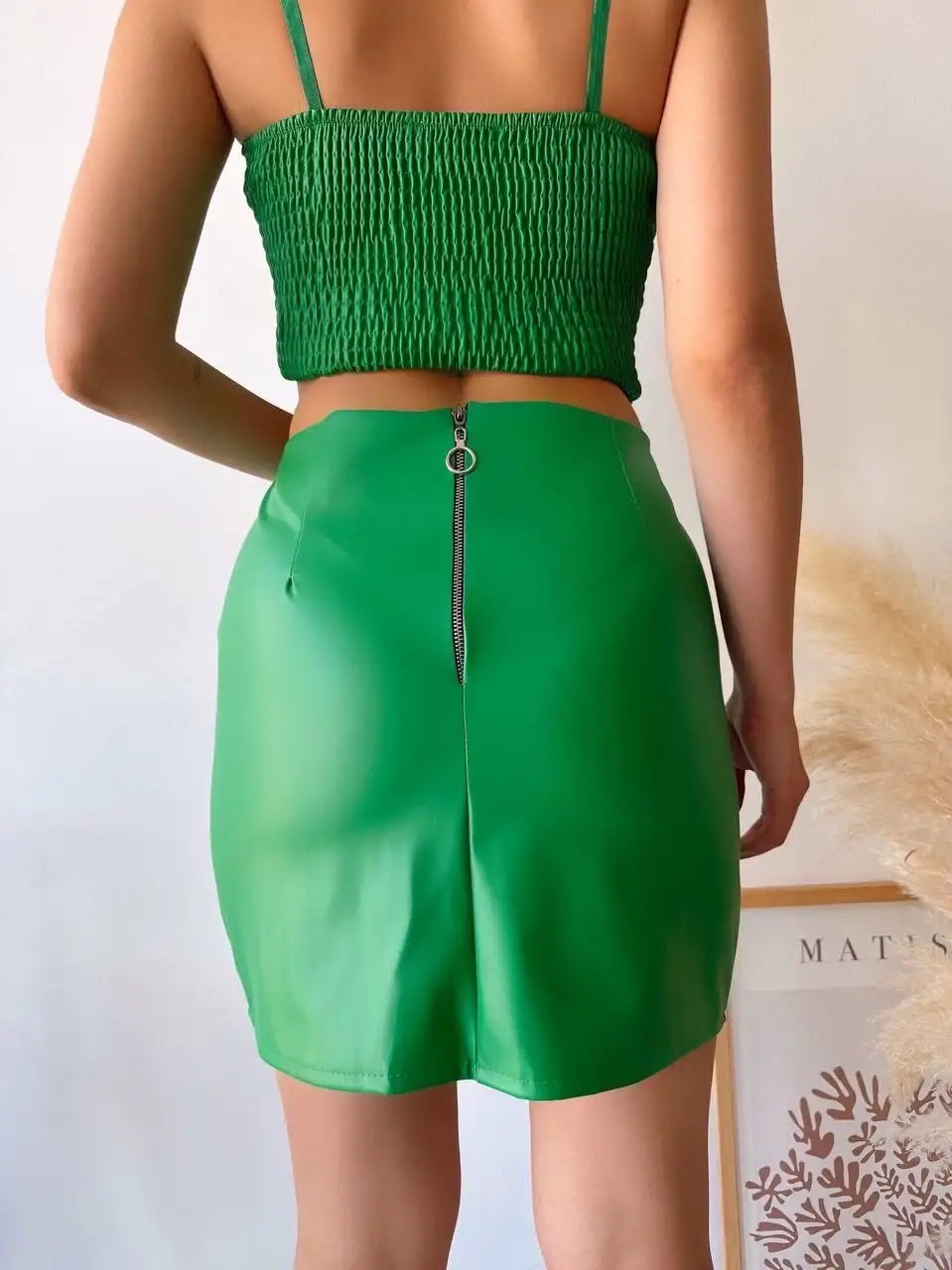 Şıklık ve modern tasarımı bir arada sunan Tek Yırtmaçlı Arkadan Fermuarlı Deri Etek Yeşil S24475, gardırobunuzun vazgeçilmezi olmaya aday! Ürün detayları: