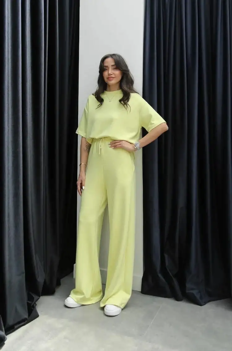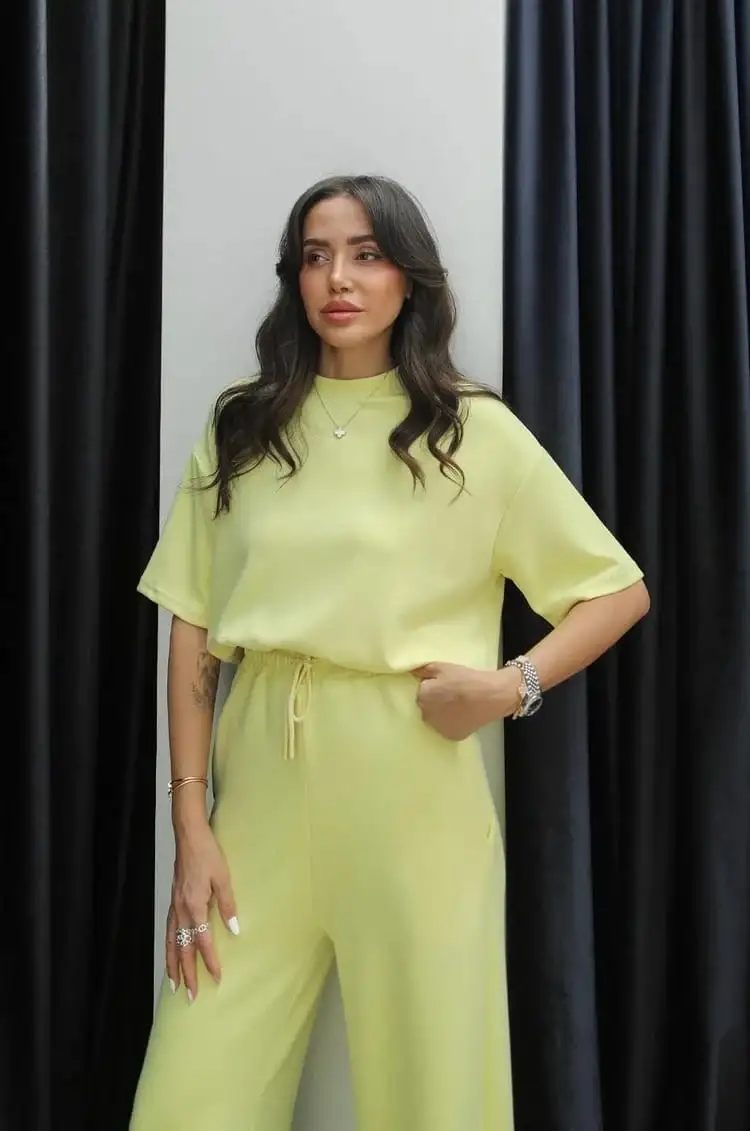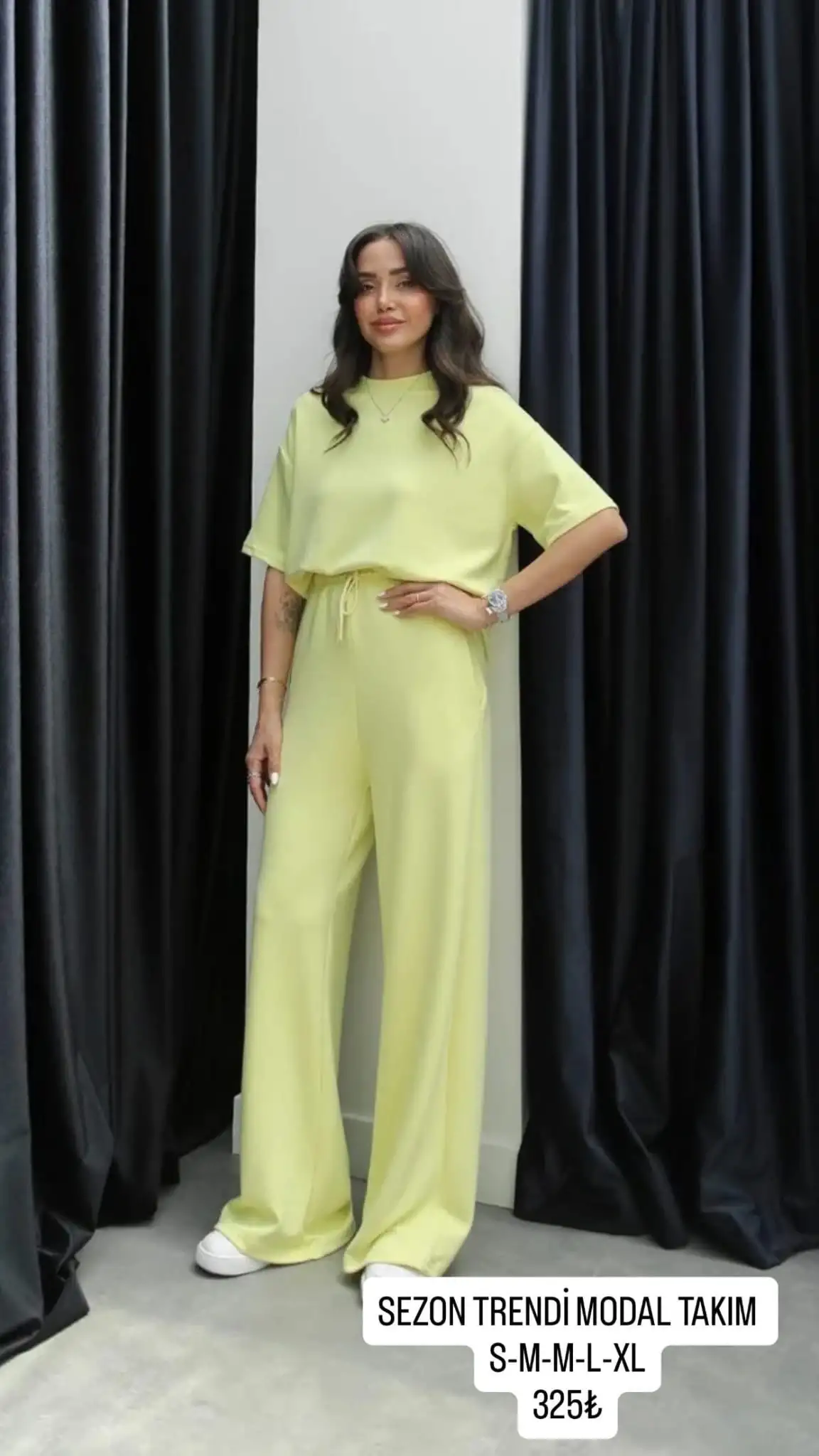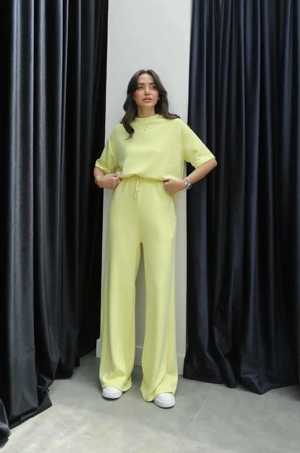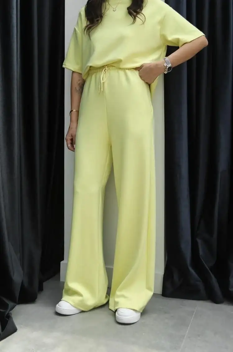 Modayı takip eden kadınların favorisi haline gelen Tshirt Alt Üst Modal Takım Sarı, şıklığı ve konforu bir arada sunuyor!