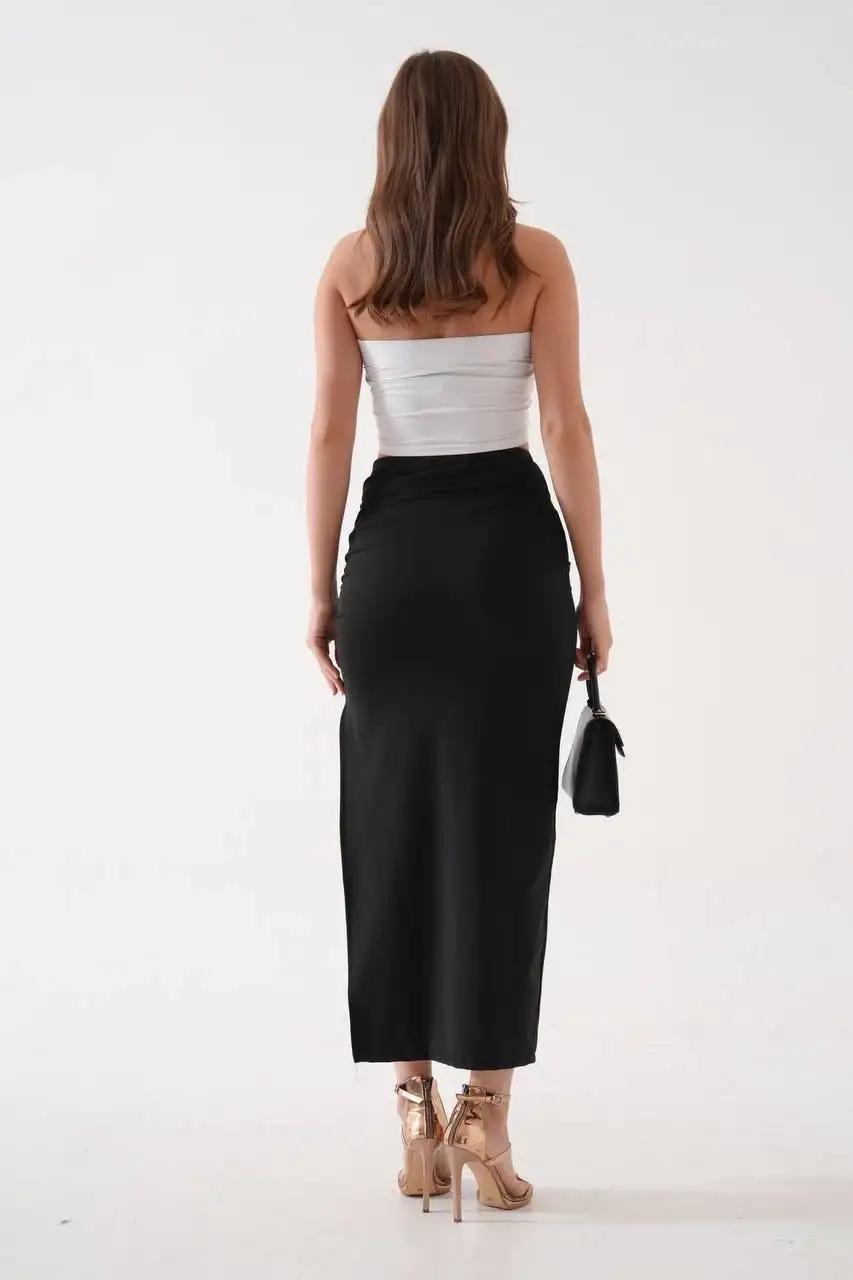 Bu şık ve zarif uzun yırtmaçlı ince kumaş etek siyah rengi ile şıklığınıza şıklık katacak. İnce kumaşı sayesinde rahatlıkla hareket edebilir, gün boyu konforlu bir şekilde kullanabilirsiniz.
