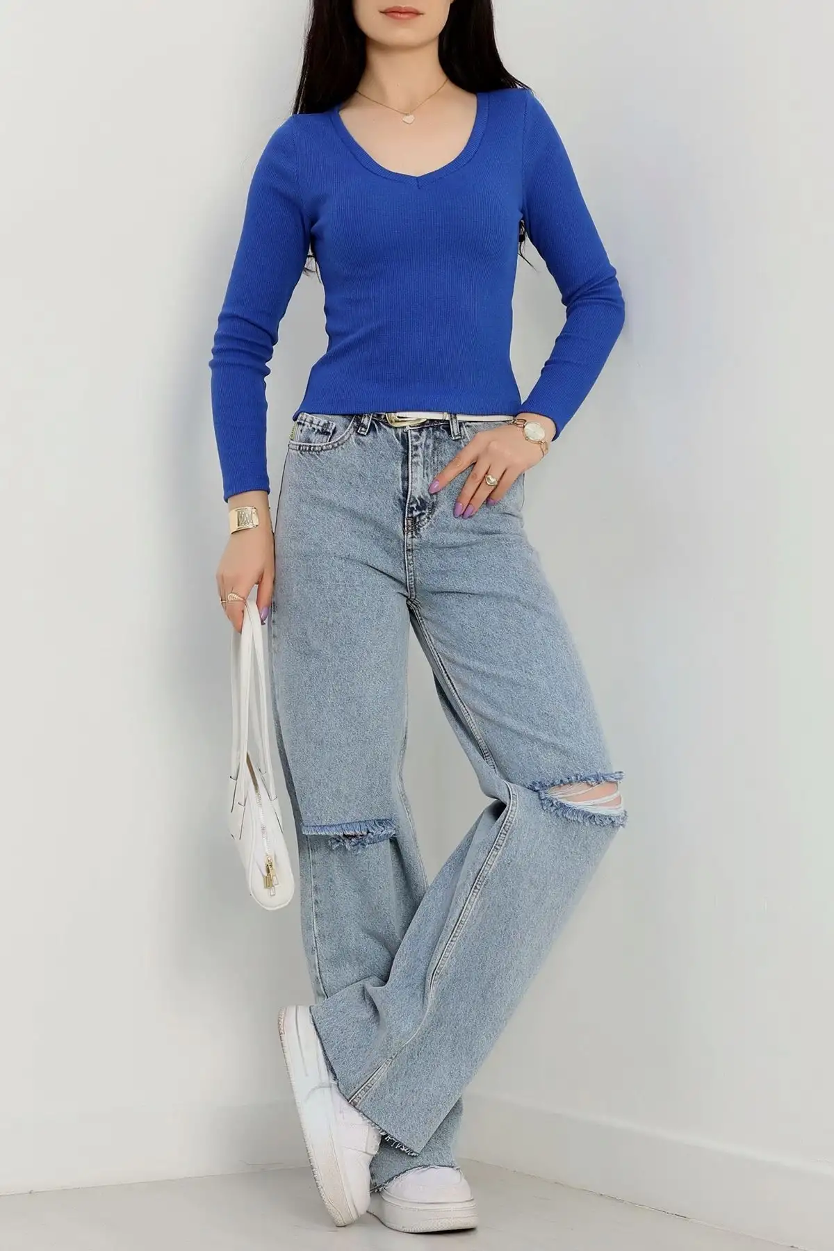 - V yaka kaşkorse detayı ile şık bir görünüm sunar.