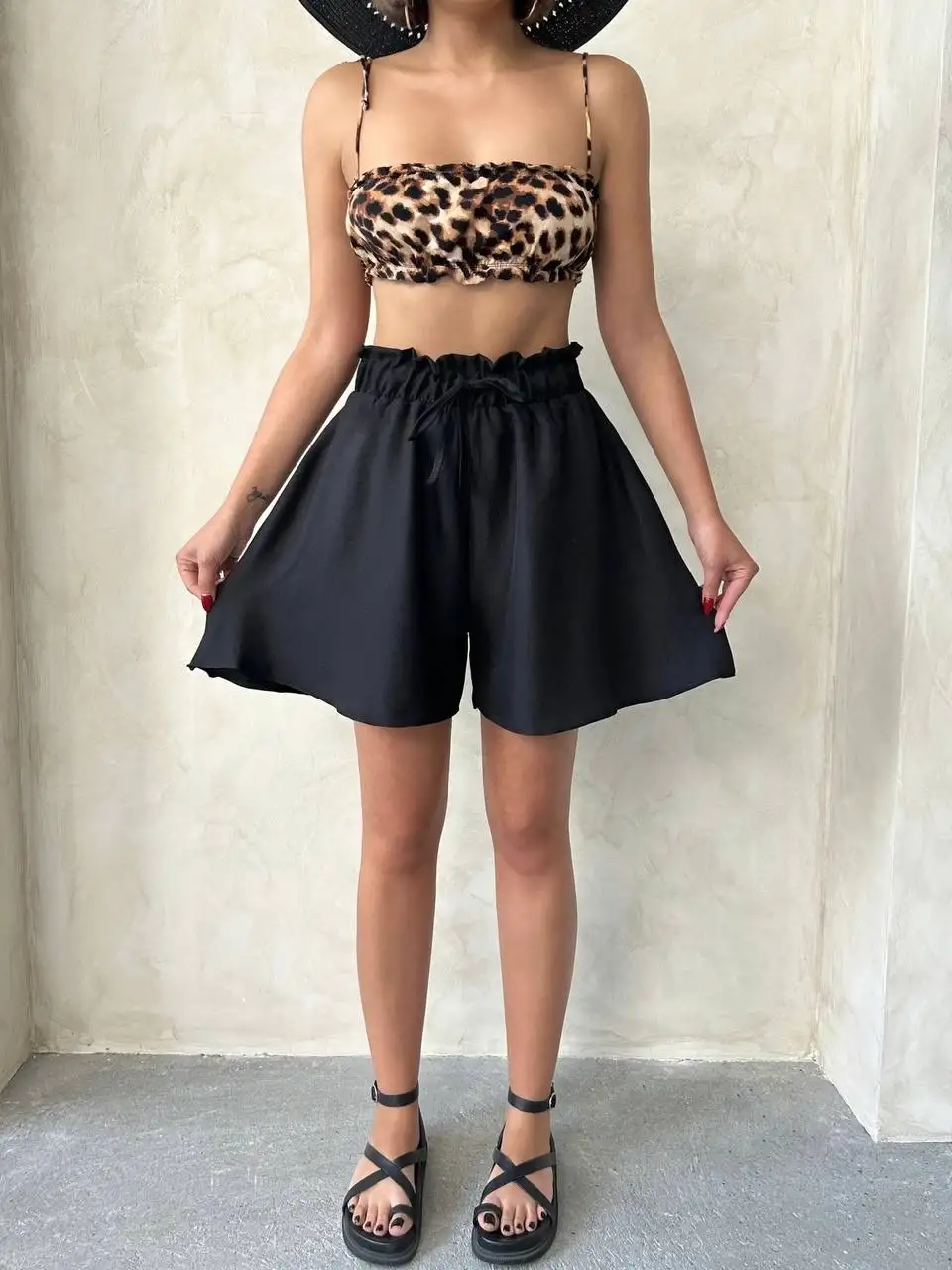 Bir tatil gününde rahatlığı şıklıkla buluşturan Volanlı Keten Şort Siyah, gardırobunun vazgeçilmez parçalarından biri olmaya aday!